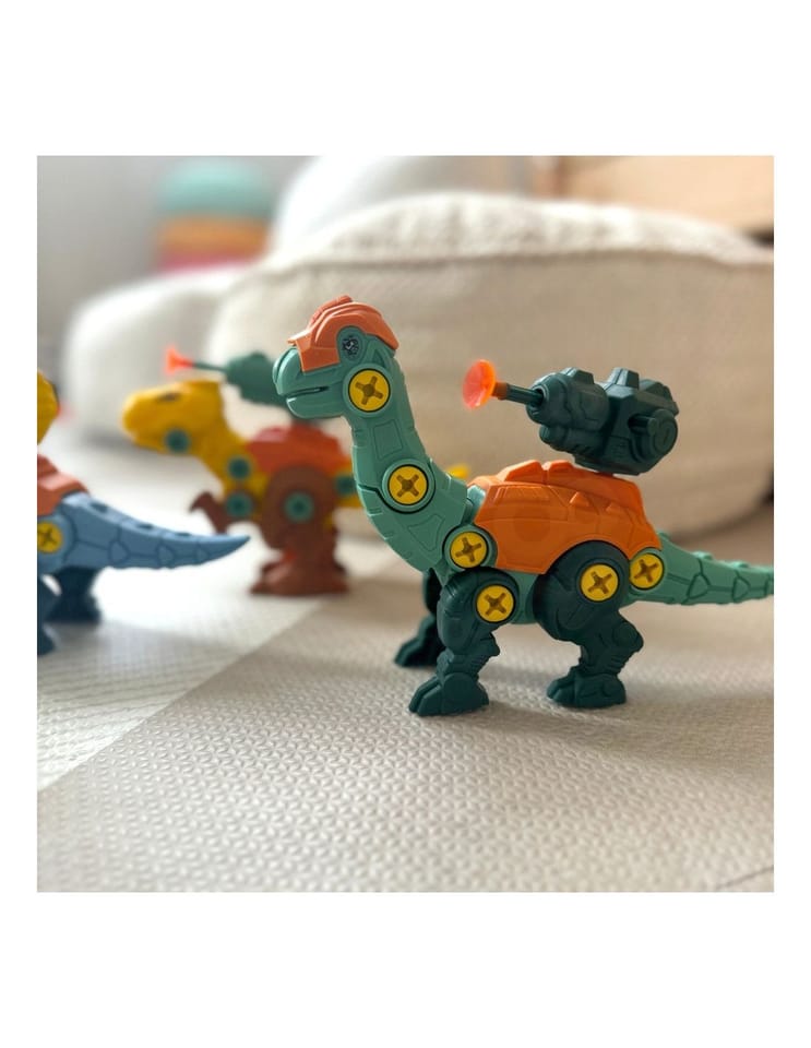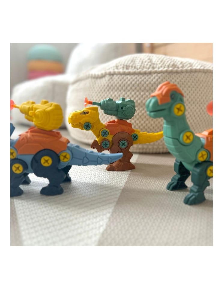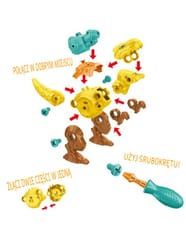Zestaw Dinozaurów od renomowanej marki Woopie to doskonała propozycja dla małych konstruktorów, który przeniesie Twoje dziecko w fascynujący świat prehistorii. W komplecie znajdują się 3 dinozaury do samodzielnego skręcenia, a także elementy, które umożliwiają złożenie tych prehistorycznych stworzeń przy pomocy praktycznego śrubokręta lub wiertarki z wymiennymi końcówkami. Wiertarka może obracać się w obie strony, co pozwala na skręcanie i rozkręcanie elementów. Po złożeniu dinozaury mają ruchome części: głowę, ogon oraz kończyny, co zwiększa możliwości zabawy. Zestaw ten doskonale rozwija zdolności manualne dziecka, czyli "małą motorykę". Zabawa polegająca na skręcaniu i składaniu przenosi malucha w świat małego majsterkowicza, a temat dinozaurów, uwielbiany przez wszystkie dzieci, dodatkowo uatrakcyjnia całość. Dzięki tej zabawce dziecko rozwinie swoją wyobraźnię i kreatywność, odkrywając tajemnice prehistorii.