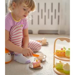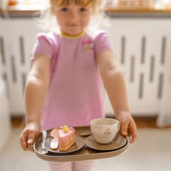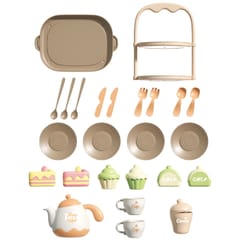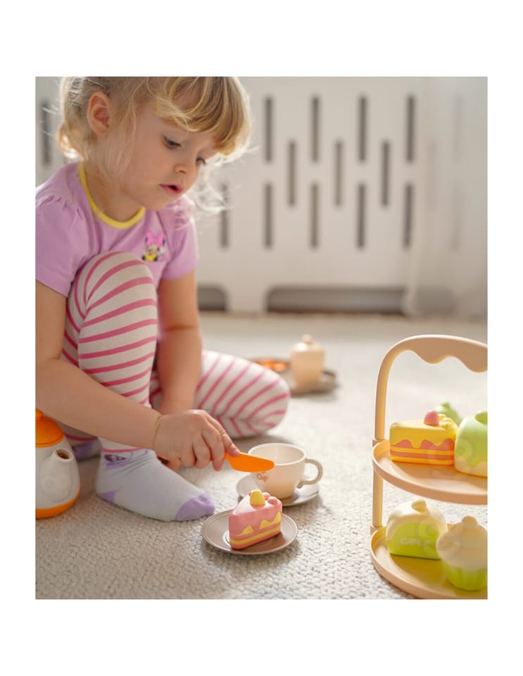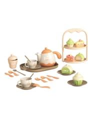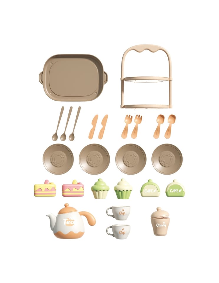✔️ zabawka od 3 roku życia✔️ zestaw zawiera 25 el. m.in.: dzbanek do herbaty, filiżanki, łyżeczki i desery✔️ stonowana pastelowa kolorystyka✔️ idealny do kreatywnej zabawy w role i naśladowania codziennych czynności