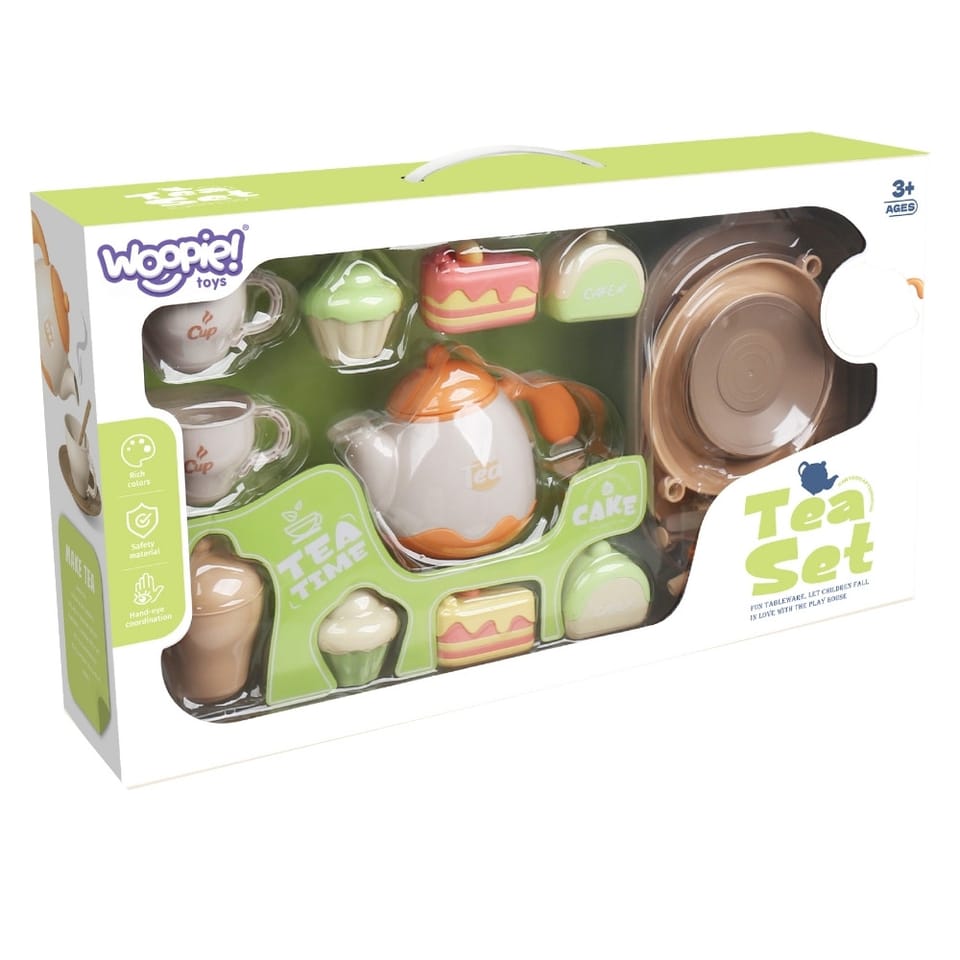 Drewniany zestaw do herbaty i deserów od marki Woopie , to świetna propozycja dla dzieci które chcą wcielać się w różne role w życiu codziennym.Urocze pastelowe kolory zachwycą Twoje dziecko a akcesoria t.j. dzbanek na herbatkę, filiżanki oraz desery pobudzą wyobraźnię i kreatywność Twojego malucha.Drewniany zestaw do herbaty i deserów sprawi, że dziecko będzie mogło przyjmować gości i serwować herbatę oraz desery całej rodzinie. Nauczy dobrych manier i umiejętności dzielenia się z innymi podczas zabawy.