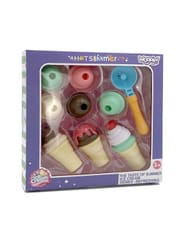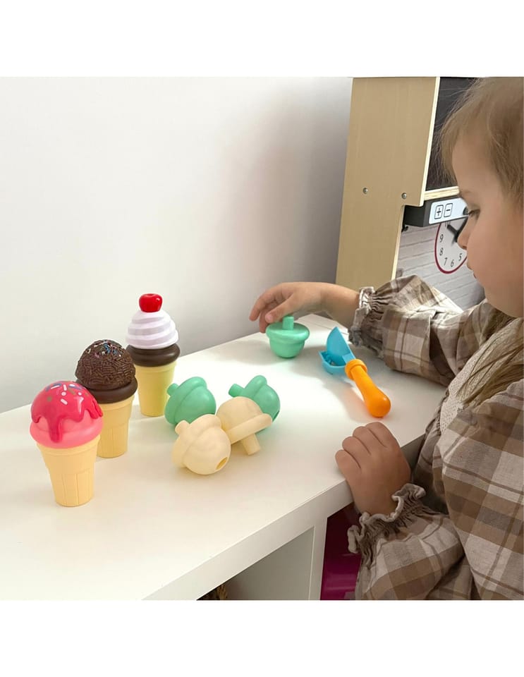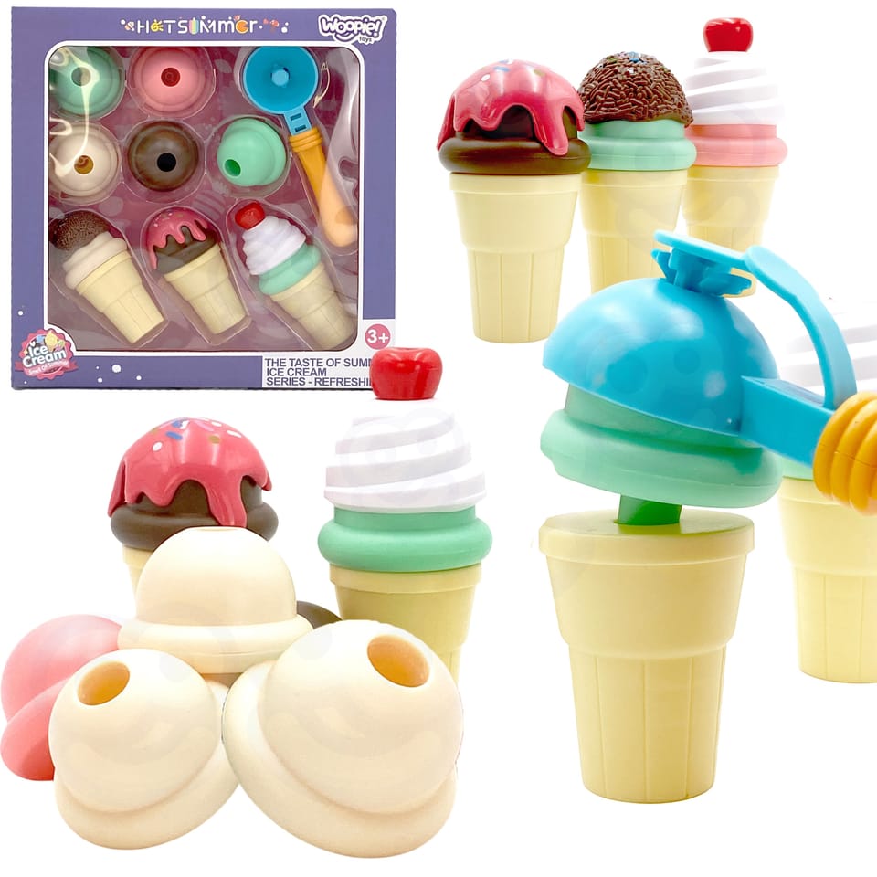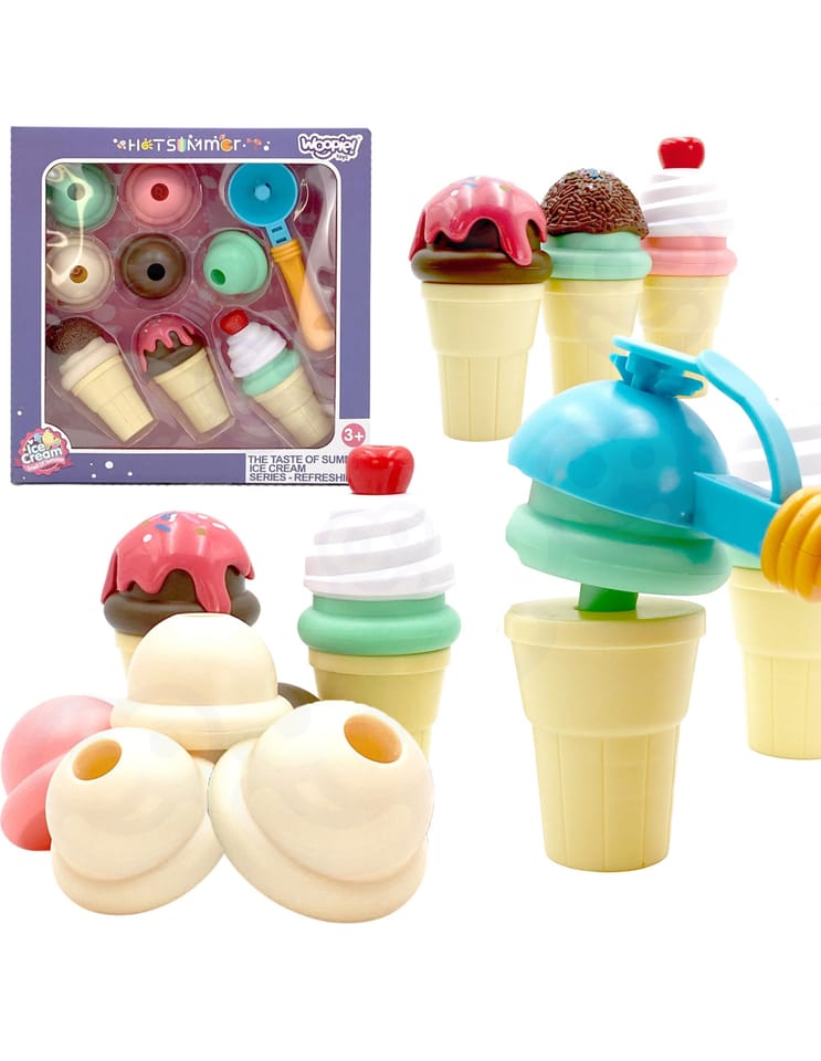 Zestaw do Robienia Lodów od marki WOOPIE pozwoli poczuć się twojemu dziecku jakby był prawdziwym cukiernikiem. W zestawie znajdują się wafelki, kulki, łyżkę do nakładania i extra dodatki. Dziecko bierze wafelek, nakłada na łyżkę dowolną gałkę i układa według swojego uznania. Prosta zabawa, a pozwoli rozwinąć wyobraźnie i kreatywność Twojego dziecka. Dziecko może wcielić się i odegrać role cukiernika i klienta z przyjaciółmi lub rodziną.