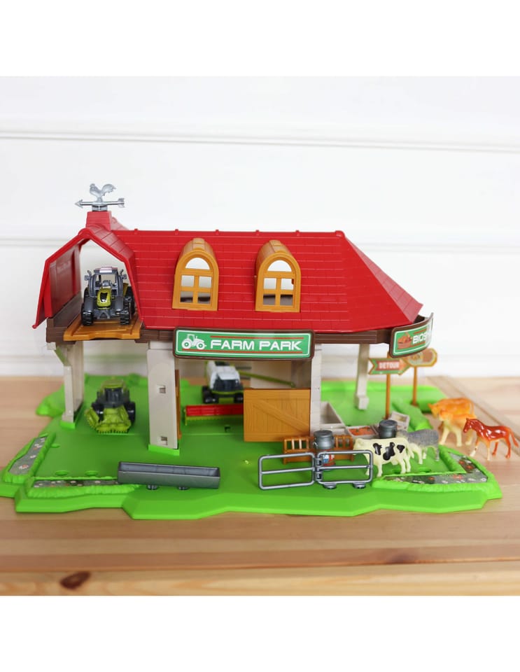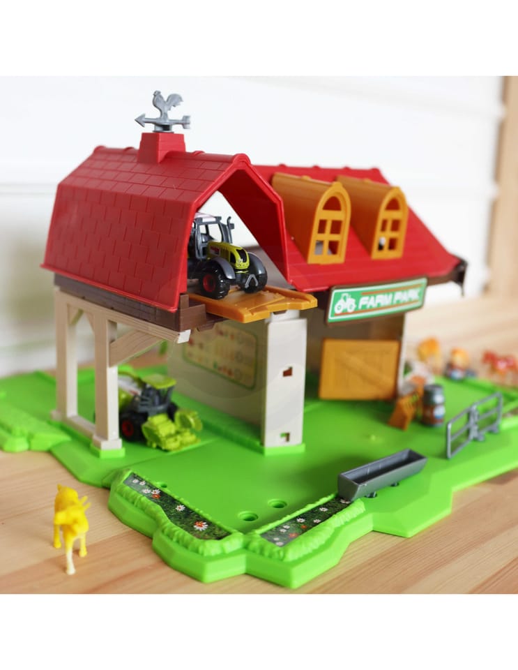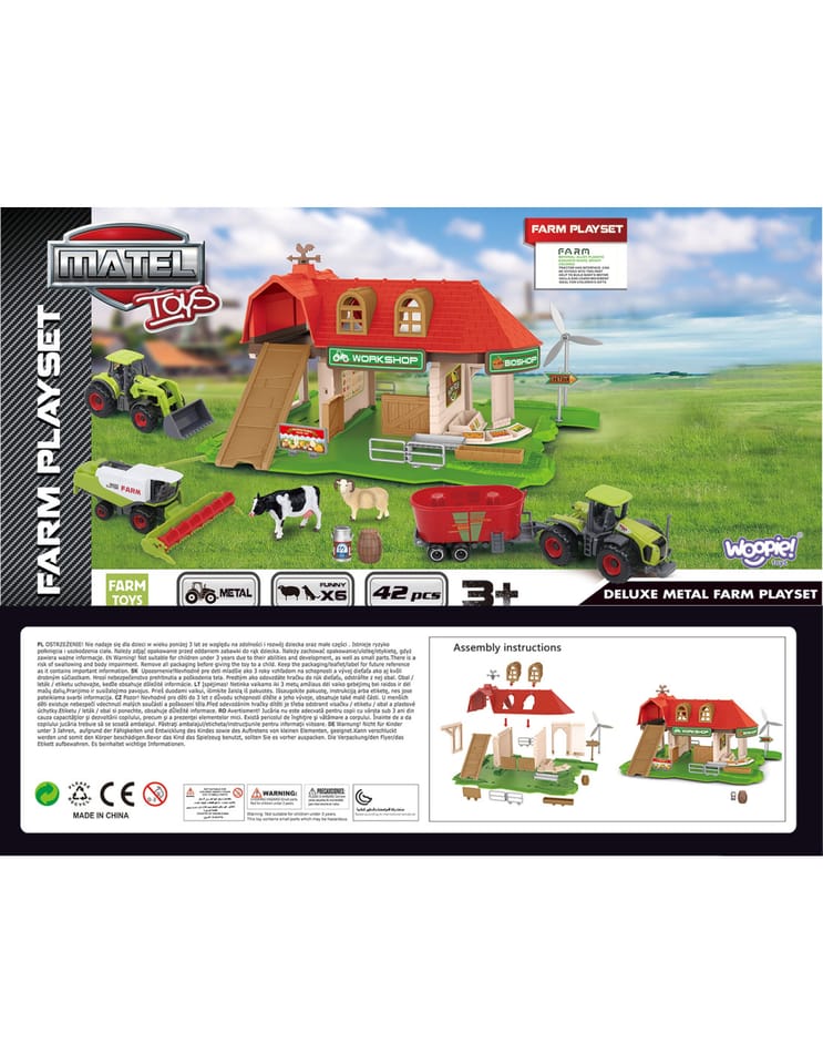 Zestaw Farma Sklepik z Traktorami od marki WOOPIE to idealna zabawka dla miłośnika wiejskiego życia. W zestawie oprócz super farmy znajdują się 3 figurki zwierząt, 3 różnego rodzaju traktory/kombajny - łącznie aż 42 elementy. Farma jest dość nowoczesna, ma 2 poziomy i również znajduje się na niej m.in sklepik z bio żywnością, co dodatkowo rozwinie świadomość ekologii u dziecka. Figurki zostały bardzo dokładnie odwzorowane i są bardzo wytrzymałe. Dzięki zabawie w farmę maluch poszerzy zakres swojej wyobraźni i kreatywności.