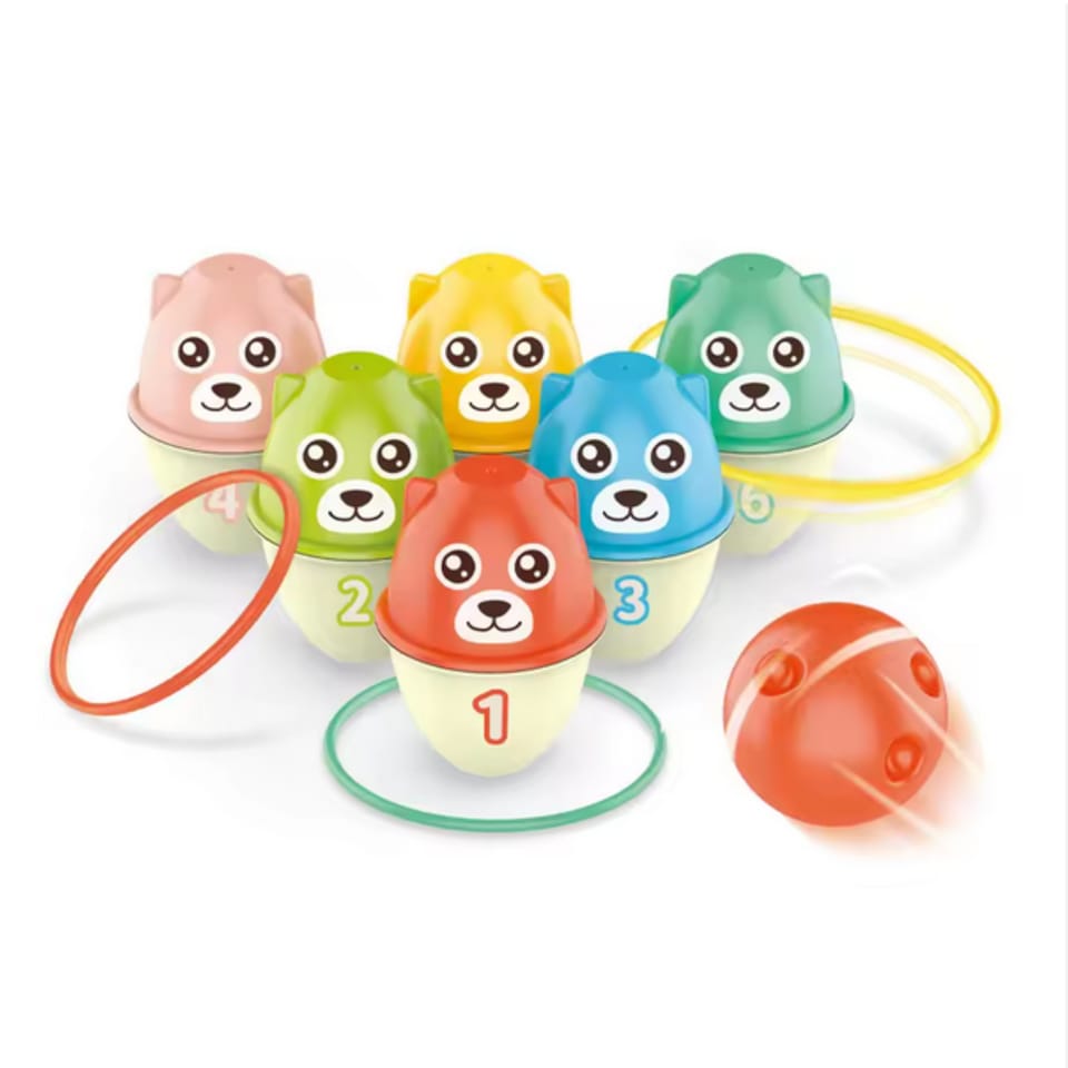 - - Zestaw kręgli – kolorowe misie z numerkami