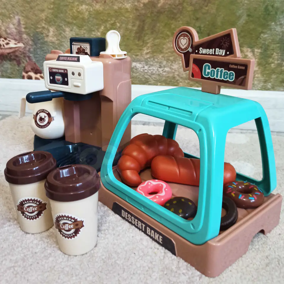Ekspres do kawy od marki WOOPIE to idealny zestaw dla dzieci, które uwielbia wcielać się w rolę dorosłych. Zestaw oprócz ekspresu i wiaty na ciastka zawiera słodkości takie jak donuty czy babeczki w różnych smakach. Ekspres i witrynę można ze sobą dowolnie łączyć lub używać oddzielnie. Ekspres do kawy ma funkcję przepływu wody, wystarczy nalać od góry wodę do pojemnika, zamontować kolbę ekspresu, podstawić kubeczek i kawa gotowa! Ponadto wydaje dźwięki/odgłosy mielenia i parzenia kawy, świeci się wtedy mrugająca czerwona lampka, a gdy kawa będzie gotowa zaświeci się zielone światło i usłyszymy sygnał zakończenia pracy. Po zamontowaniu portu filtra usłyszymy również odgłos nalewania kawy. Zabawka z pewnością zaciekawi każde dziecko. Zabawa w sklep z przyjaciółmi pomoże rozwinąć świadomość i zdolności społeczne.