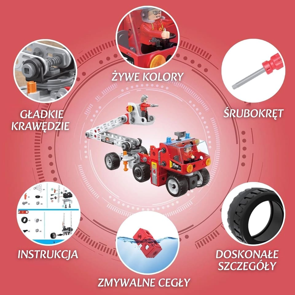 Zestaw Konstrukcyjny CREATOR CITY FIRE BRIGADE pozwoli na wejście na wyższy poziom zabawy w odgrywanie roli małego inżyniera. Wykonany z solidnych materiałów zestaw z charakterystycznymi czerwono-białymi elementami straży pożarnej z pewnością zachwyci każdego młodego konstruktora. Zestaw zawiera elementy do budowy różnych pojazdów ratowniczych, które dziecko będzie mogło samodzielnie konstruować podczas zabawy. Ten pięknie wykonany zestaw wspiera kreatywną zabawę w odgrywanie ról i pozwala dzieciom na rozwijanie umiejętności technicznych oraz społecznych poprzez zabawę.