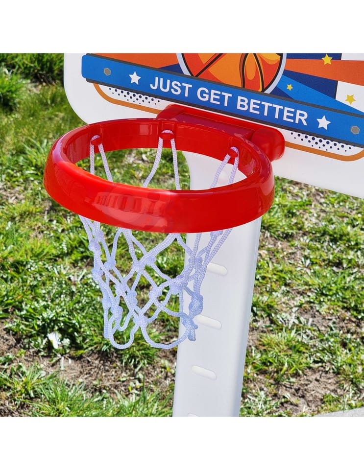 Super zestaw koszykówka z piłką i pompką marki Woopie jest idealnym zestawem sportowym dla Twojego dziecka! Zestaw zachęci Twoje dziecko do uprawiania sportu. Gra w "kosza" dostarczy twojemu dziecku rozwój tzw. dużej motoryki, co jest idealne dla prawidłowego rozwoju dziecka. Koszykówka rośnie razem z dzieckiem i posiada wariant regulacji wysokości. Wielkim plusem jest to, że produkt może być używany zarówno w domu jak, i na zewnątrz - Twoje dziecko będzie mogło grać bez względu na pogodę. Koszykówka jest na tyle duża (wysokość: 125 cm), że pozwoli Twojemu dziecku grać profesjonalne mecze ze swoimi przyjaciółmi. Po skończonej grze, możesz odłożyć piłkę w specjalnie dedykowane dla niej miejsce (przy podstawce)