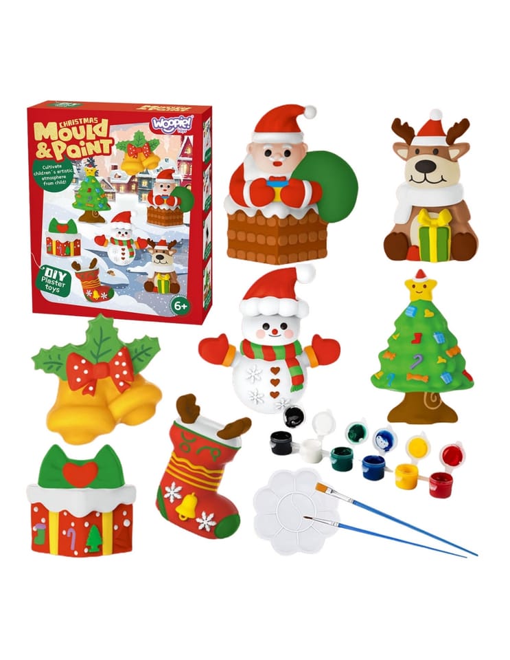 Rozbudź kreatywność swojego dziecka i wprowadź je w magiczny klimat świąt z wyjątkowym zestawem Mould & Paint Christmas DIY! od marki Woopie Ten świąteczny zestaw plastyczny pozwala stworzyć własne figurki z gipsu – wystarczy użyć formy, wymieszać gips, wlać go do foremek i po wyschnięciu pomalować gotowe kształty według własnego pomysłu.
