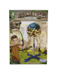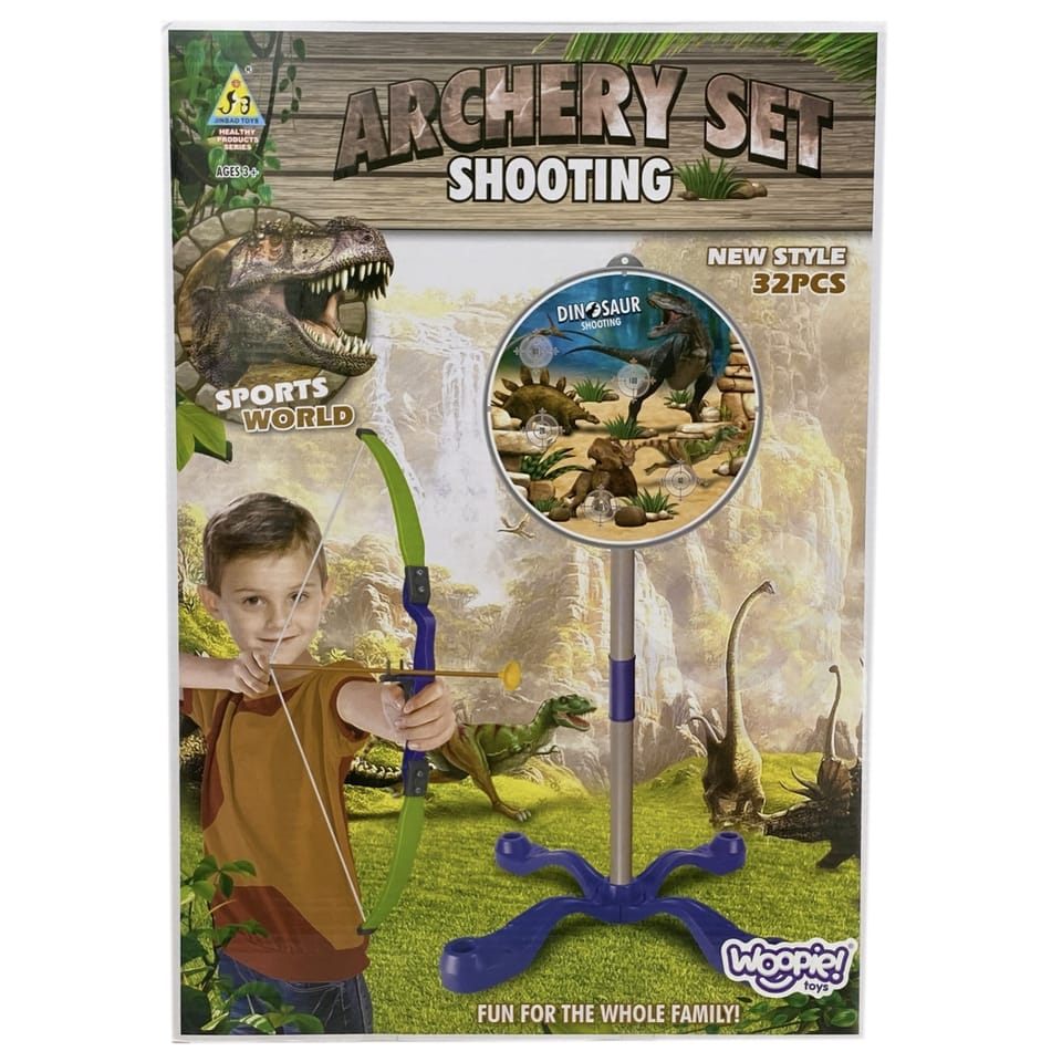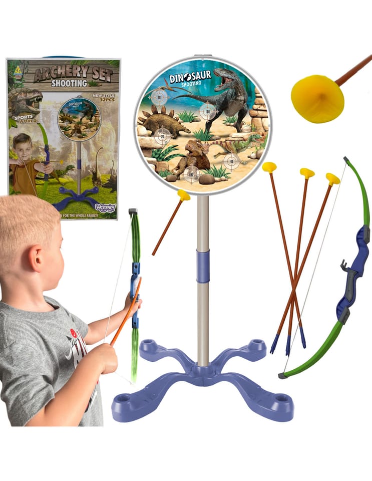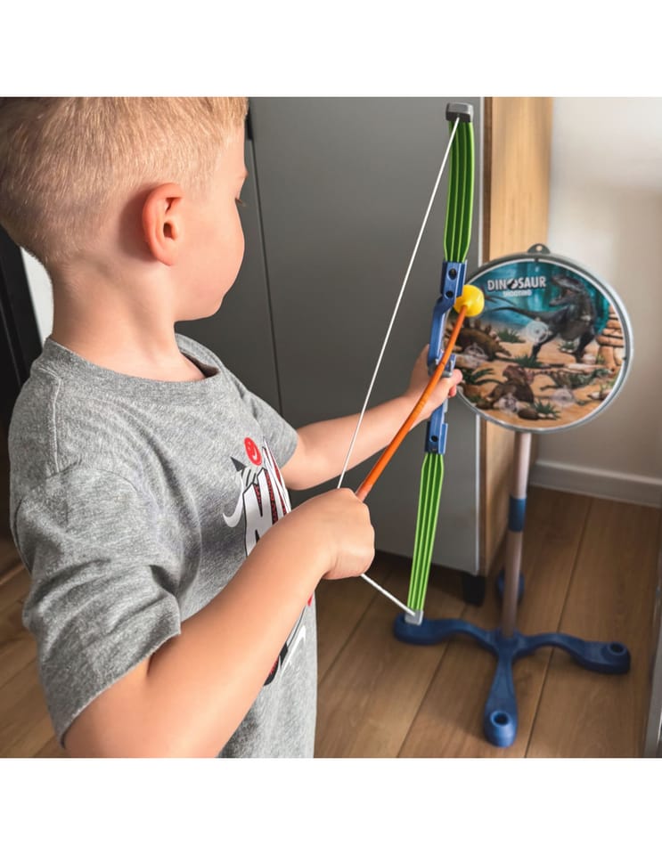 Zestaw łucznika z motywem Dinozaurów od firmy WOOPIE jest świetnym wyborem dla Twojego malucha. Zabawka w zestawie posiada łuk wraz z tarczą oraz 3 strzały z przyssawką na końcach, która daje odczucie prawdziwej strzały. Tarcza jest w motywie dinozaurów z różnymi celami i jest postawiona na stabilnej podstawce. Zabawka umożliwia ćwiczenie koordynacji wzrokowo-ruchowej przy trafieniu do celu. Wszystko w ładnych stonowanych kolorach, które przyciągają wzrok i zachęcają do zabawy.