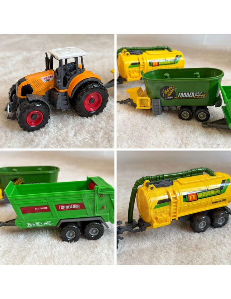 Mały farmer wyrusza do pracy! Solidny traktor z wymiennymi przyczepami marki Woopie pozwala dzieciom wcielać się w codzienne zadania na farmie od zbioru kukurydzy, przez karmienie zwierząt, aż po transport mleka i rozrzucanie nawozu. Zestaw zachęca do tworzenia własnych historii, łączenia elementów i ciągłej zmiany ról, dzięki czemu zabawa jest żywa, różnorodna i pełna pomysłów.