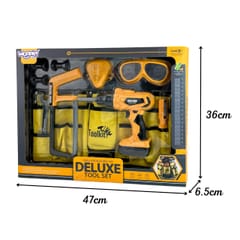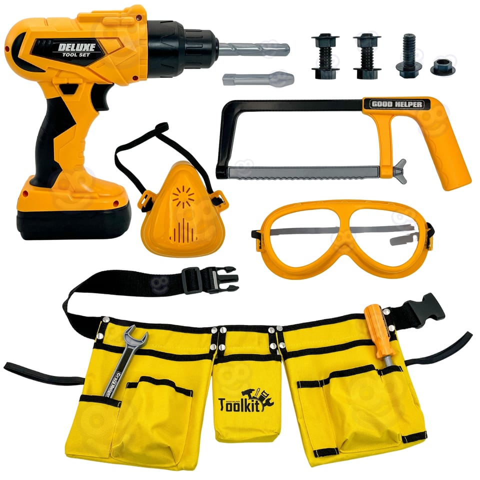 Zestaw Narzędzi Małego Majsterkowicza marki WOOPIE to kompletny zestaw narzędzi do zabawy w budowę:, okulary ochronne, pas na narzędzia, wkrętarka zasilana bateriami oraz narzędzia i elementy konstrukcyjne pobudzają wyobraźnię i zachęcają do twórczej zabawy w majsterkowanie. Realistyczne efekty zabawek oraz solidne dodają autentyczności i zapewniają długie godziny zabawy.
