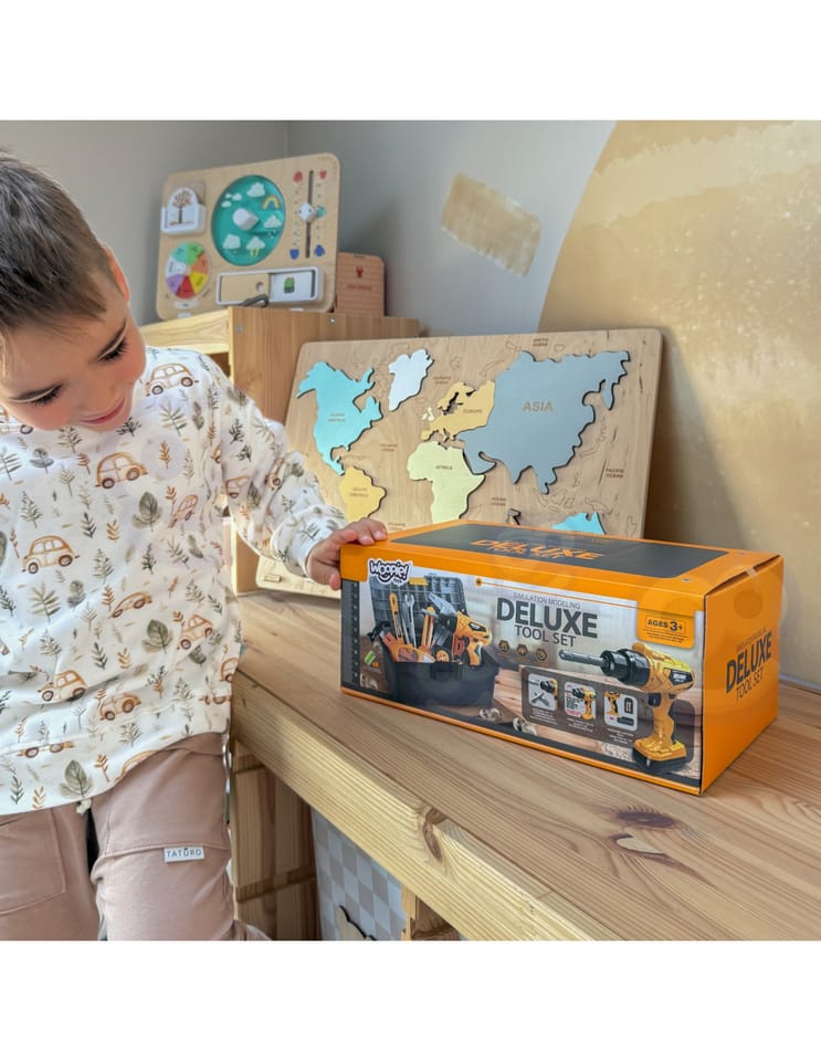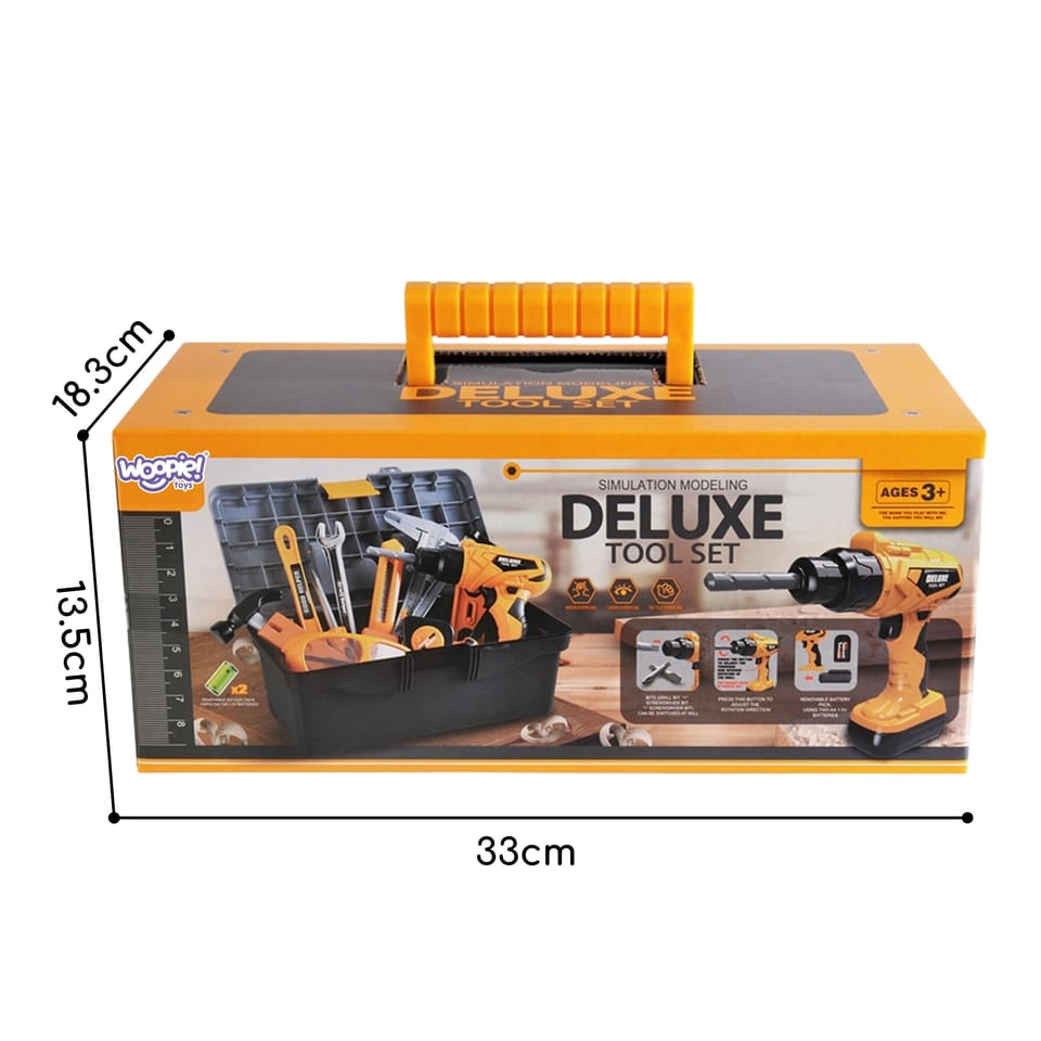 Zestaw Narzędzi Małego Majsterkowicza z Wkrętarką w Walizce od marki Woopie to idealna zabawka dla małego majsterkowicza. Ten kompleksowy komplet, zawierający aż 39 elementów, to prawdziwy warsztat w skrzynce! Z działającą wkrętarką elektryczną z funkcją wyrzynarki oraz licznymi narzędziami, Twoje dziecko będzie mogło naśladować dorosłych i rozwijać swoje umiejętności. Zabawka jest bezpieczna i trwała, a dołączona skrzynka narzędziowa ułatwia przechowywanie i transport.