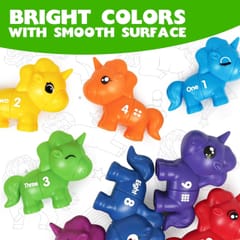 Zabawka edukacyjna "Dopasuj Cyferki” to kreatywna zabawka, która przeniesie Twoje dziecko do magicznego świata jednorożców. W trakcie zabawy maluchy mogą łączyć poszczególne części jednorożców, dopasowując je według kolorów, cyferek lub kształtów. Jest to nie tylko świetna forma rozrywki, ale także rozwijająca zabawka, która stymuluje umiejętności manualne, spostrzegawczość i logiczne myślenie dziecka. Zestaw, składający się z kolorowych jednorożców, został zaprojektowany tak, aby zapewnić dzieciom godziny wciągającej i pouczającej zabawy.