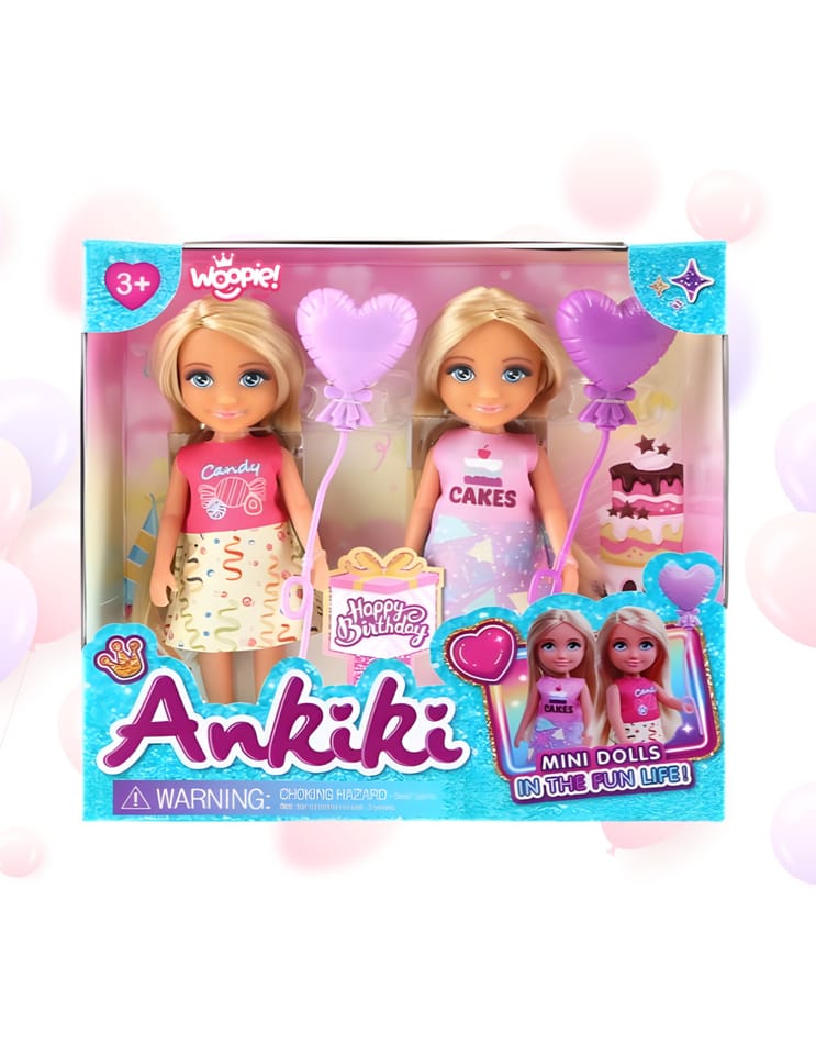Przygotuj się na najsłodsze przyjęcie w historii z fantastycznym zestawem Ankiki "Happy Birthday" od WOOPIE! Ten wyjątkowy komplet zawiera dwie urocze mini laleczki w tematycznych, kolorowych strojach – jedna w stylu "Candy", druga "Cakes". Każda laleczka jest gotowa do świętowania, trzymając piękny balon w kształcie serca. To idealna zabawka do odgrywania scenek urodzinowych, pieczenia tortów i organizowania przyjęć. Zestaw rozwija kreatywność i pozwala dzieciom tworzyć niezliczone, radosne historie.