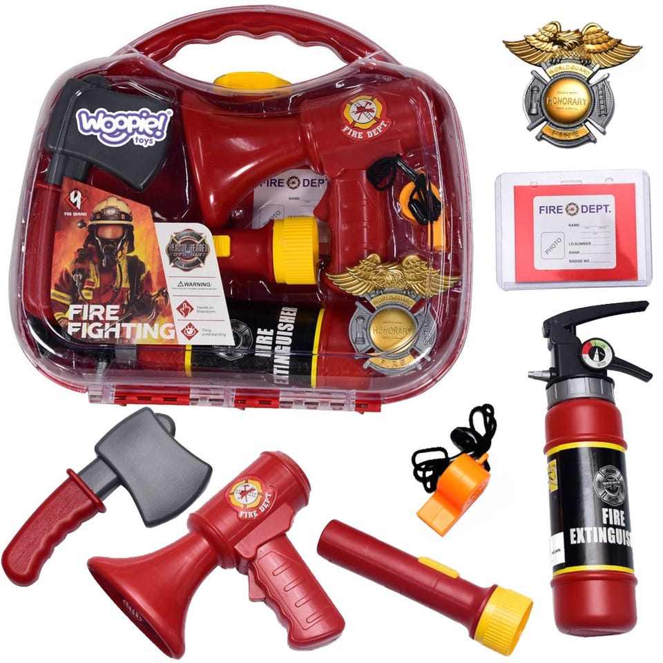 Walizeczka Małego Strażaka od marki WOOPIE to marzenie każdego miłośnika straży pożarnej! Zestaw zawiera wszystkie niezbędne akcesoria, które pozwolą wcielić się dziecku w prawdziwego strażaka, jak: gaśnica, megafon, odznaka i wiele innych. Ten wysoce profesjonalny zestaw jest odwzorowaniem prawdziwych sprzętów. Gaśnica tryska prawdziwą wodą, latarka świeci, a megafon wydaję dźwięk syreny strażackiej. Dziecko może uzupełnić identyfikator swoim imieniem, aby poczuć się jak prawdziwy strażak. Elementy są idealnie dopasowane do rączek dzieci. Zabawy w odgrywanie ról pozytywnie rozwijają dziecko - rozwijają wyobraźnię i kreatywność oraz świadomość codziennego życia.