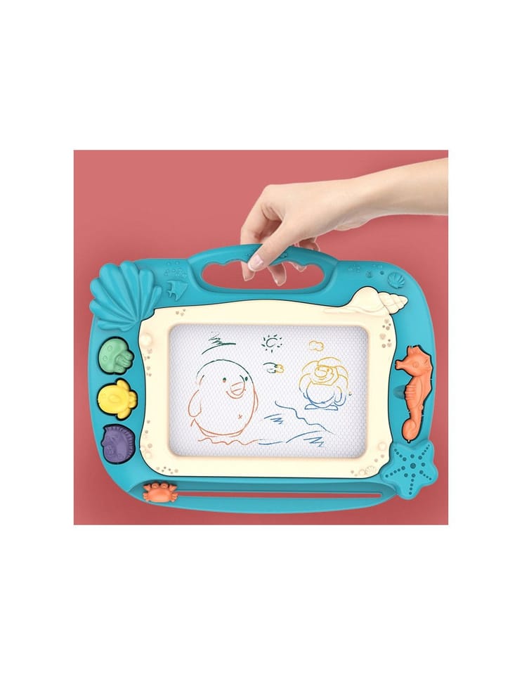 Znikopis Tablica Magnetyczna od marki WOOPIE daje możliwość kreatywnej zabawy na długi czas! Tablica zachęca do pisania i rysowania. Rysowanie pozwoli skoncentrować, wyciszyć i uspokoić Twoje dziecko. Znikopis pozwala na tworzenie nieskończonej ilość obrazków – wystarczy przejechać specjalnym suwakiem, a rysunek zniknie i można rysować od nowa! Zestaw dodatkowo zawiera wygodny długopis oraz stempelki, które urozmaicą dzieło. Tablica posiada wygodny uchwyt, dzięki czemu dziecko może zabrać ją wszędzie. Znikopis rozwinie u dziecka zdolności manualne, wyobraźnie, kreatywność oraz da szansę na rozwinięcie artystycznej strony dziecka!