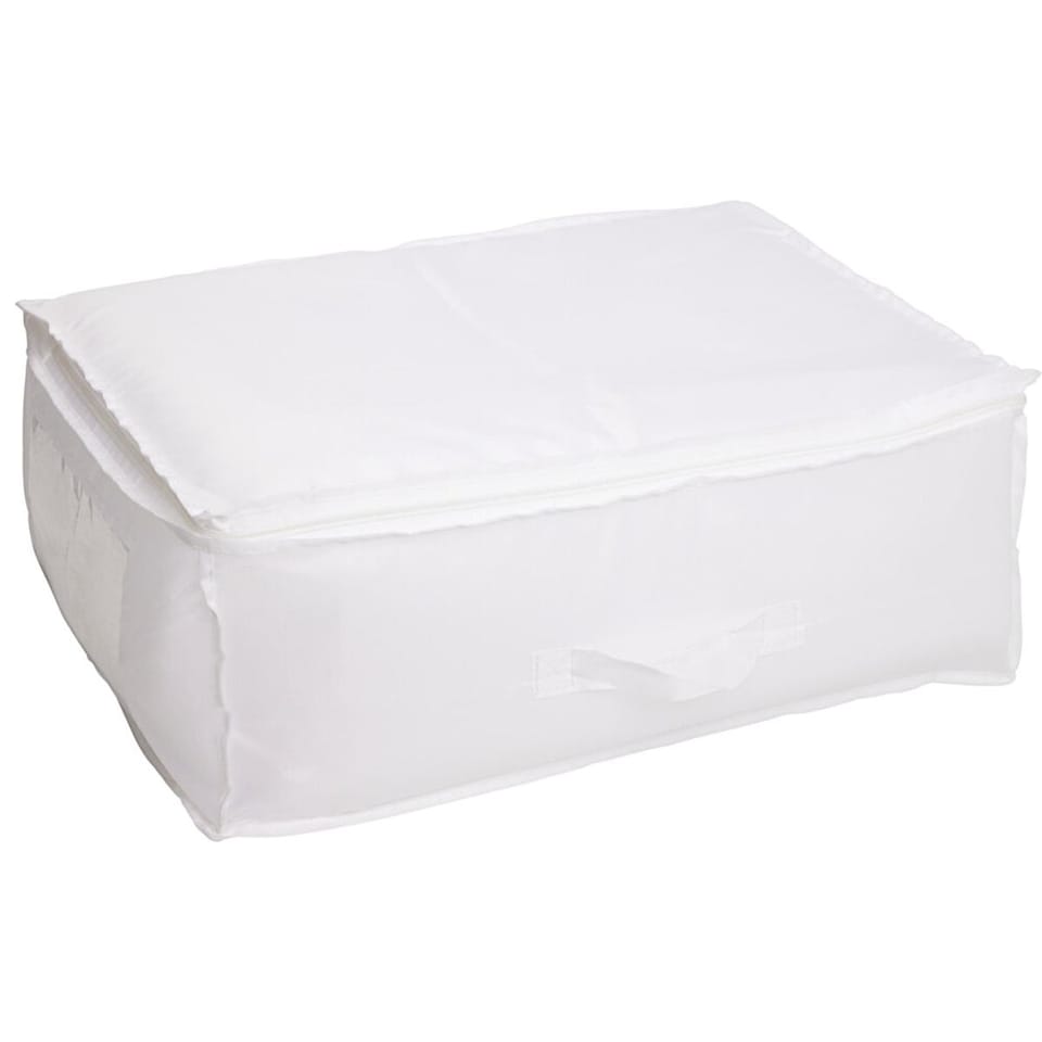 Parametry:- Wymiary ok.: 50x38x20cmMateriał: NON WOVEN 210D POLYESTER 60GSM, tworzywo sztuczneRodzaj zamknięcia: zamek błyskawicznyWymiar okienka ok.: 25x15cmKolor: białyMarka: EXCELLENT HOUSEWARE