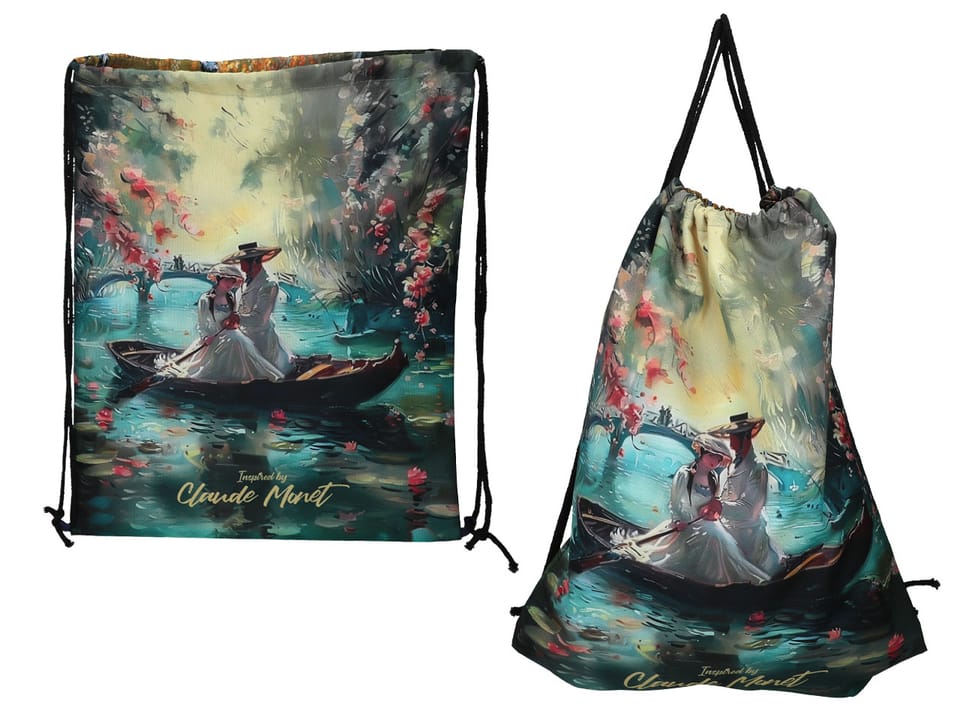 Funkcjonalny worko-plecak z modnymi designami. Bez problemu pomieści format A4. Kolorystyka plecaka oddaje subtelne tonacje i światło, które Monet zastosował w swojej twórczości.