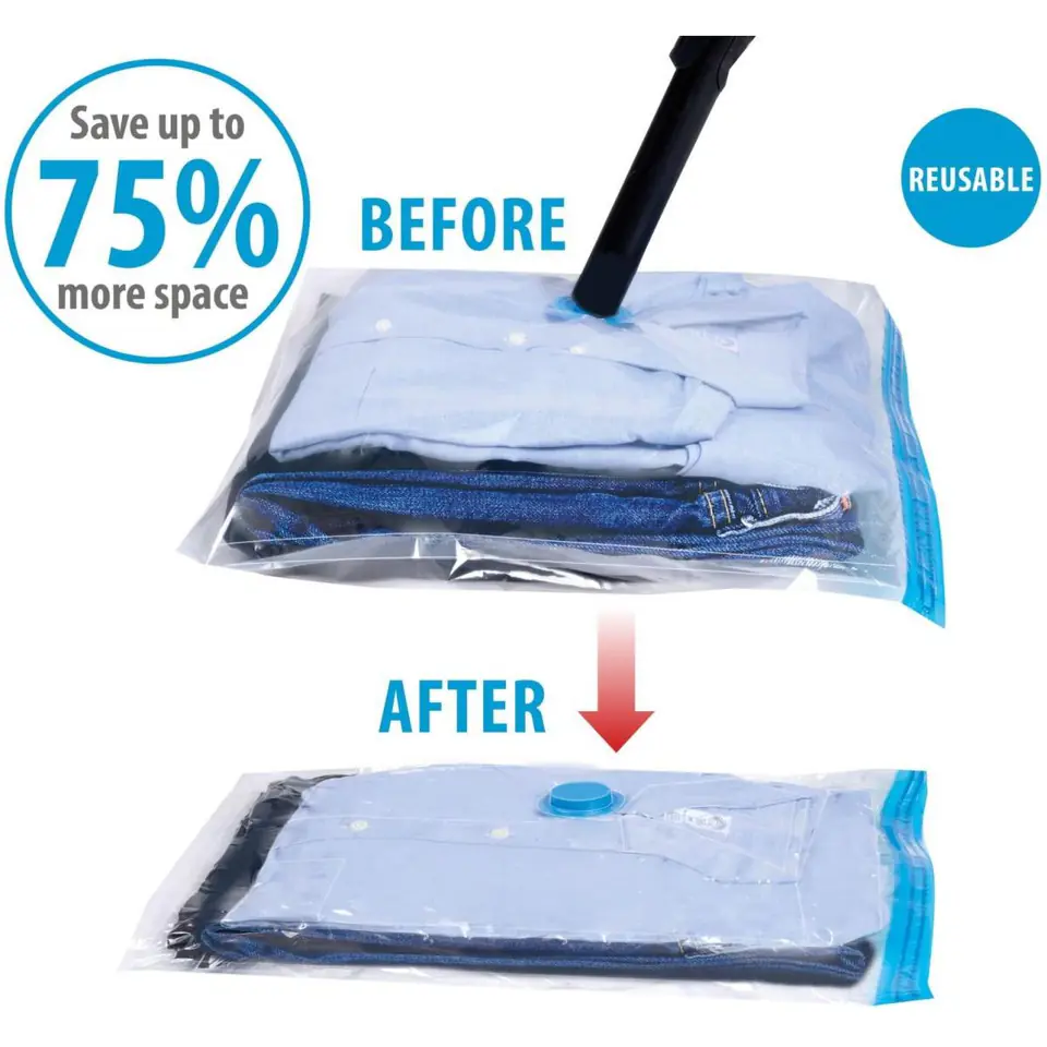 - dzięki torbie próżniowej oszczędza się do 75% zajmowanej powierzchnipróżniowo zamknięte rzeczy przez bardzo długi czas zachowują świeżośćszybki i łatwy efekt próżni uzyskujemy za pomocą domowego odkurzaczazamykana na specjalny klips dołączony do zestawu pozwoli utrzymać jej szczelnośćidealny dla alergików, zmniejsza rozwój roztoczy, chroni przed wilgocią i molamimożliwość zmniejszenia objętości sprawdzi się również podczas pakowania rzeczy do walizki