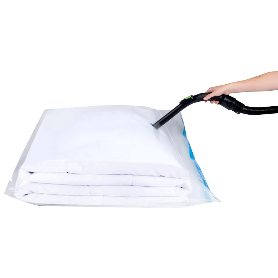 - dzięki torbie próżniowej oszczędza się do 75% zajmowanej powierzchnipróżniowo zamknięte rzeczy przez bardzo długi czas zachowują świeżośćszybki i łatwy efekt próżni uzyskujemy za pomocą domowego odkurzaczazamykana na specjalny klips dołączony do zestawu pozwoli utrzymać jej szczelnośćidealny dla alergików, zmniejsza rozwój roztoczy, chroni przed wilgocią i molamimożliwość zmniejszenia objętości sprawdzi się również podczas pakowania rzeczy do walizki