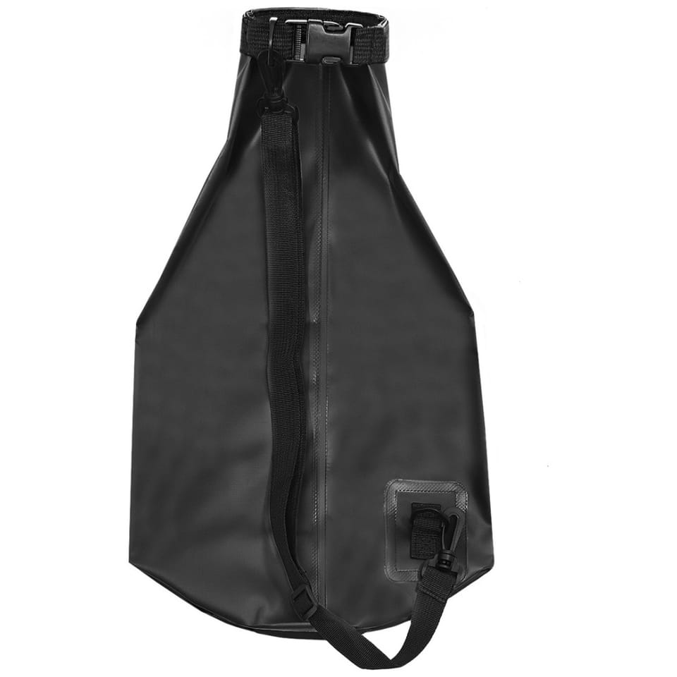- SPECYFIKACJA – kolor: czarny; materiał: PVC; pozostałe: poliester + PP; wymiary worka: 29,5 x 51,5 cm; wymiary zewnętrzne: 41,5 x 54 cm; regulowany pasek: 55-105 cm; waga: 0,292 kg; waga w opakowaniu: 0,326 kg.