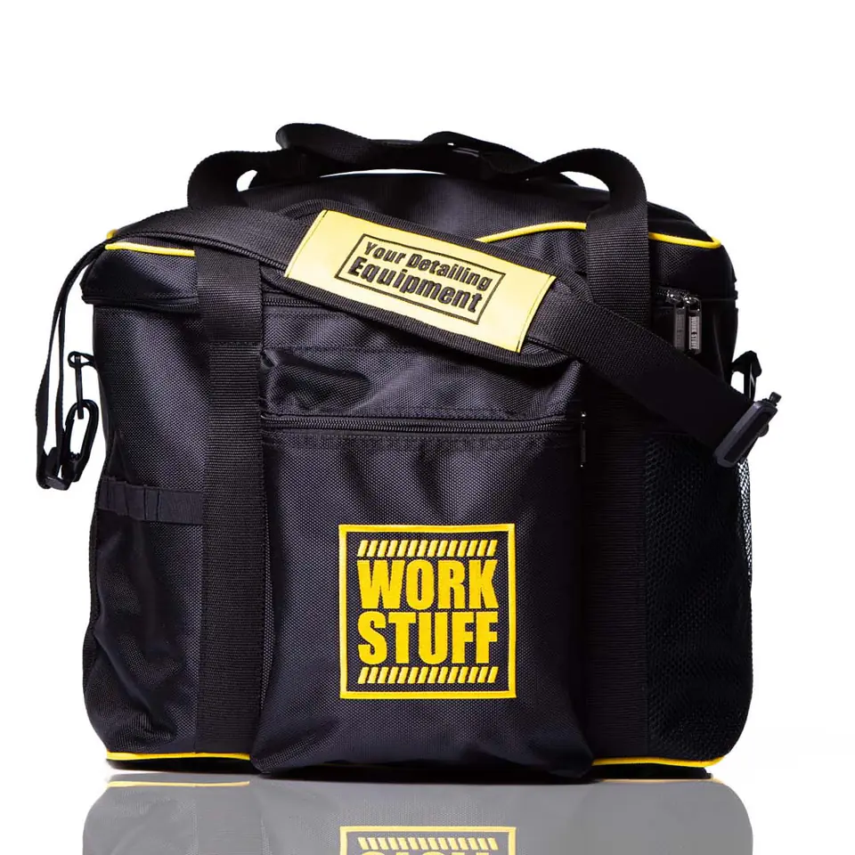 Work Stuff Work Bag – jedna z najbardziej pojemnych toreb na rynku. Unikalne rozwiązania jak nóżki w podstawie, czy ruchome ścianki czynią z niej jedną z najciekawszych propozycji wśród toreb detailingowych. Ścianki i dno zostały dodatkowo usztywnione. Posiada kieszeń w klapie oraz z przodu torby. Na tyle znajduje się specjalny rzep z osłonką. Na bokach produkt został wzbogacony o specjalne komory do umieszczenia pędzli detailingowych. Wyposażona w pasek z hasłem "Your Detailing Equipment" umożliwiający noszenie torby na ramieniu oraz uchwyty do trzymania jej w dłoni. Na froncie znajduje się wyhaftowane logo marki Work Stuff.