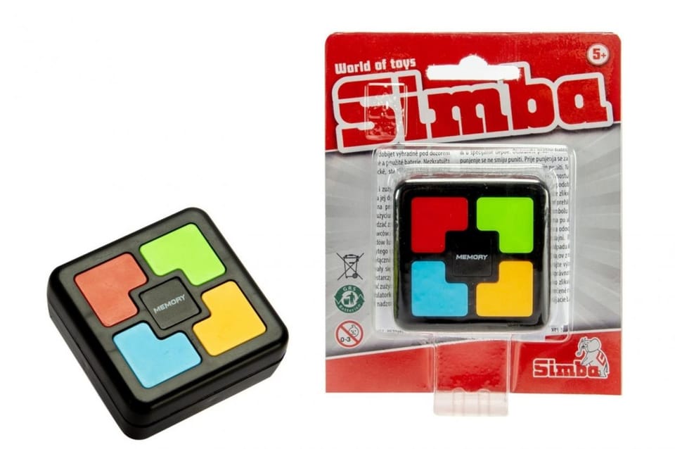 WOT Gra Podążaj za światłem\nGra dźwiękowa memory. Za każde 5 poprawnie zapamiętanych kolorów słychać dźwięk \"wygranej\" typu aplauz, za błędnie zapamiętane dźwięki słychać dźwięk przegranej, 6 cm x 6 cm; 5l+