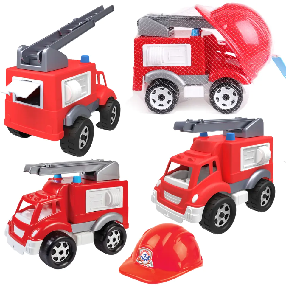 Każdy mały chłopiec marzył o tym, aby zostać strażakiem. Autko podbije serce nie jednego poskromiciela ognia i na pewno zapewni długą i emocjonującą zabawę. Dołączony do zestawu kask z pewnością ułatwi wcielenie się w prawdziwego strażaka. Zestaw idealnie sprawdzi się podczas zabawy zarówno w domu jak i na podwórku. Wóz strażacki posiada regulowaną drabinę, można wydłużać ją i skracać.