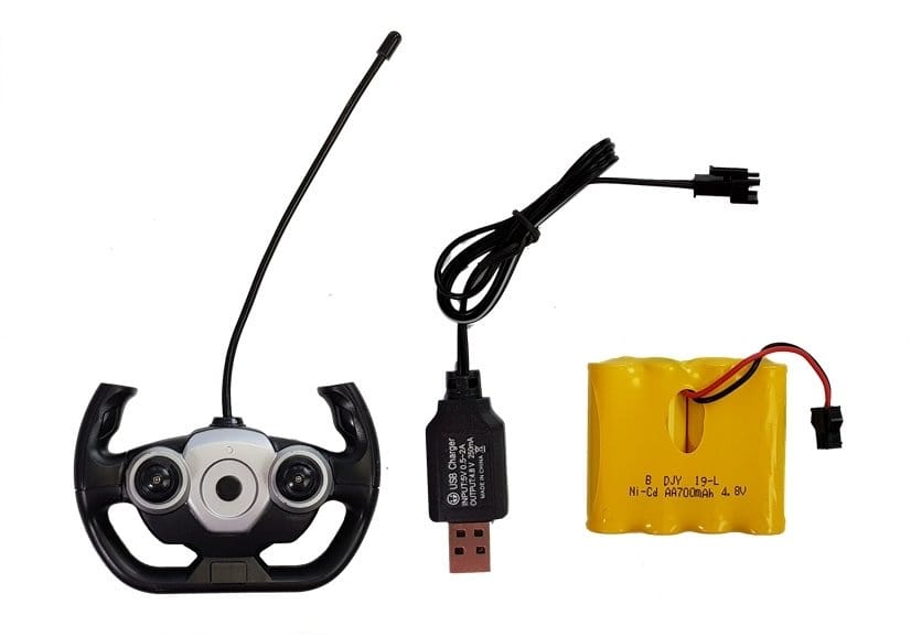 Możliwość obsługi pojazdu pilotem pozwala na jazdę przód/tył i prawo/lewo, a kształt przypominający kierownicę idealnie dopasuje się do małych rączek naszego młodego operatora wozu strażackiego. Dodatkowym atrakcją jest psikanie wodą, wystarczy za pomocą lejka wlać wodę i zabawa gotowa.