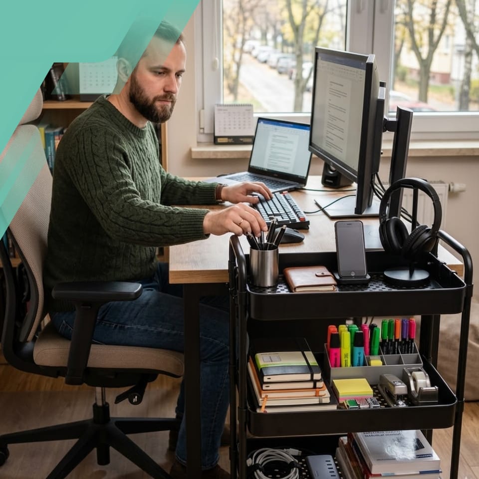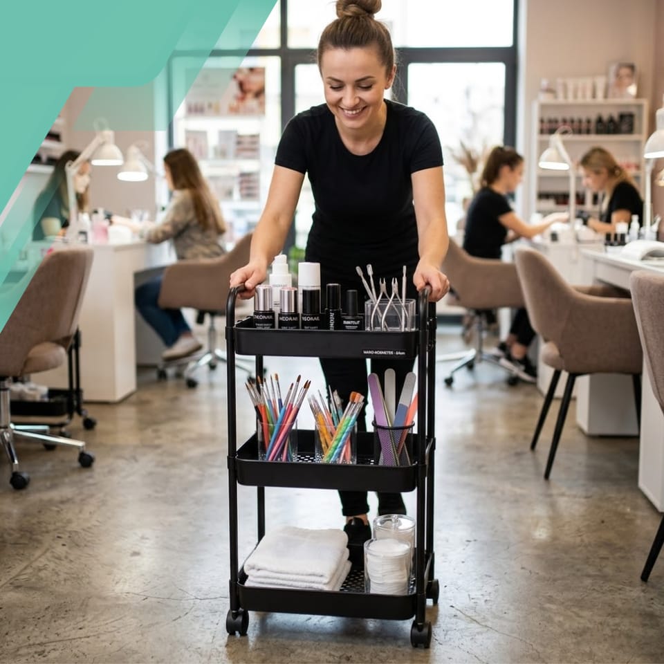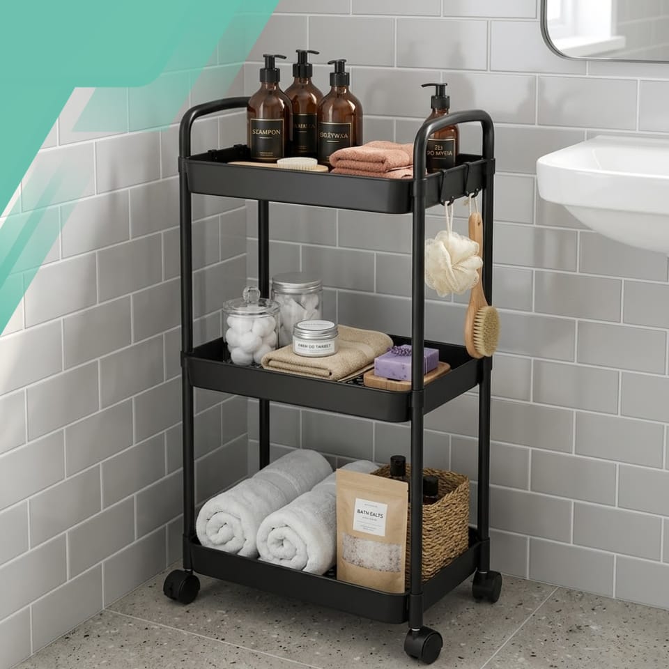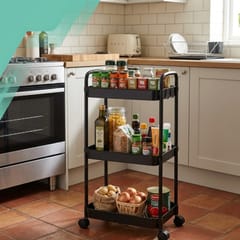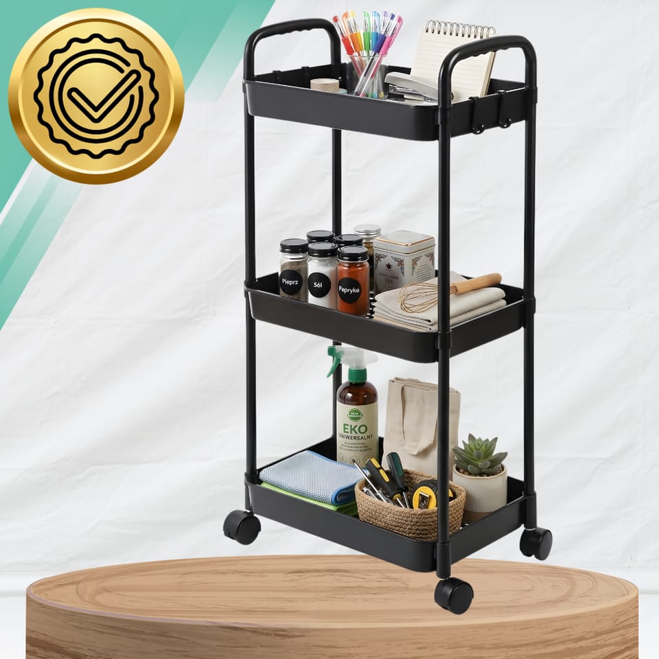 Praktyczny, mobilny wózek kuchenny o nowoczesnym, czarnym wykończeniu — idealne rozwiązanie do kuchni, jadalni, biura czy salonu. Trzypoziomowa konstrukcja zapewnia dużą pojemność i porządek, a lekka rama oraz cztery kółka umożliwiają wygodne przemieszczanie z miejsca na miejsce. Stabilna budowa i staranne wykończenie gwarantują trwałość przy codziennym użytkowaniu.