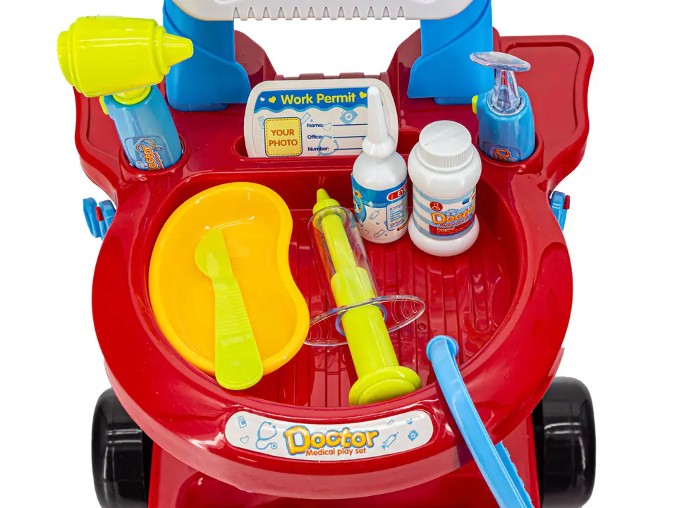 Są dzieci, które już od najmłodszych lat wiedzą, co chcą robić. Jeśli Twoje dziecko z uporem maniaka leczy wszystkie misie i lalki i twierdzi, że chce zostać lekarzem, wyposaż je w ten wózek Małego Doktora – jej bogate, wieloczęściowe wyposażenie i estetycznie wykonane, kolorowe przyrządy lekarskie pobudzą wyobraźnię dziecka i pozwolą mu połączyć fantastyczną zabawę z nauką i rozwojem własnych pasji.