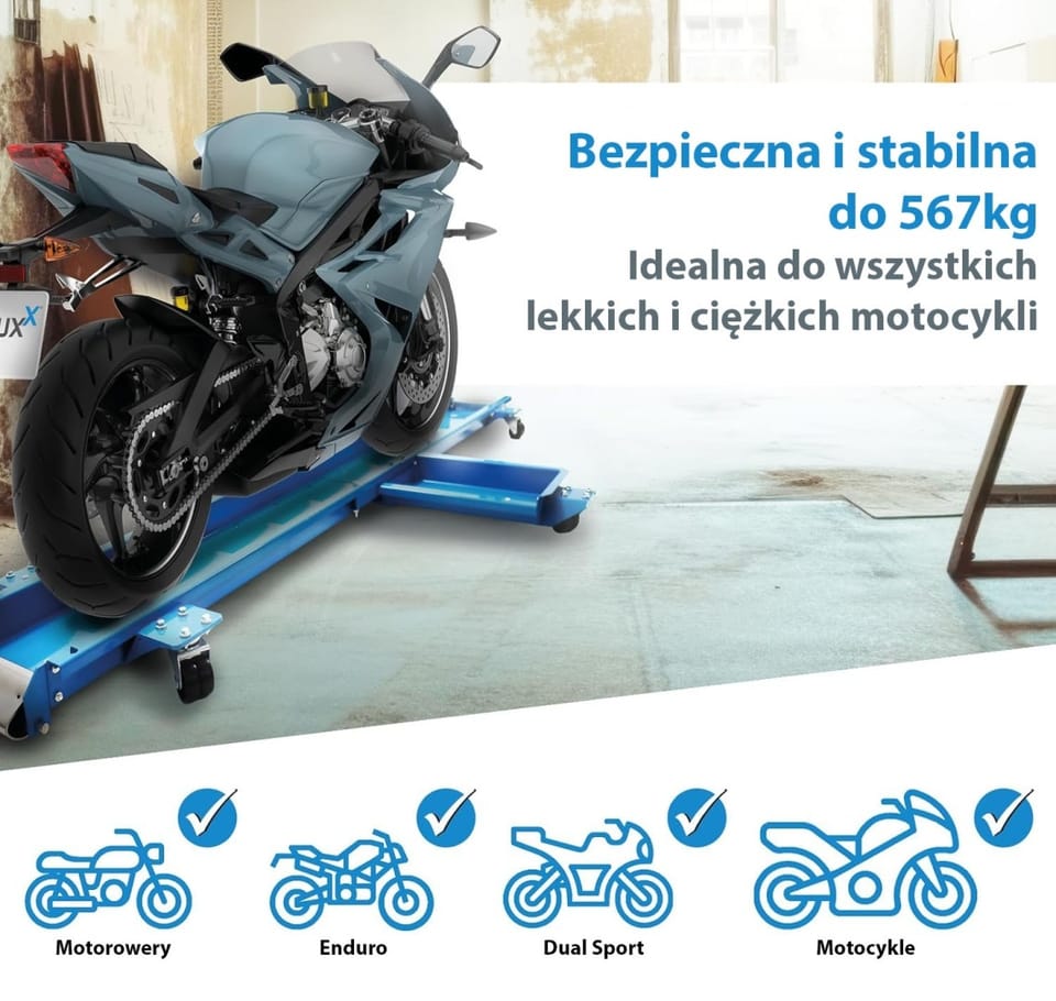 Masz ciężki motocykl i mało miejsca w garażu?Wózek manewrowy BITUXX pozwala precyzyjnie i bez wysiłku przestawiać motocykl nawet w bardzo ciasnych przestrzeniach – bez dźwigania, bez ryzyka i bez stresu.
