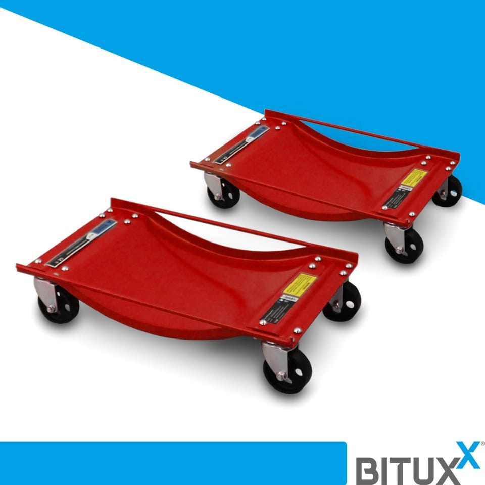 Wózki marki BITUXX umożliwiają manewrowanie pojazdami z uszkodzonym lub zablokowanym napędem. Każdy z wózków posiada 4 skrętne koła i udźwig 450kg. Idealne do zastosowania w warsztatach, podczas wystaw samochodowych i w salonach. Wózki zostały idealnie wyważone. Stalowa konstrukcja zapewnia ich długą żywotność.