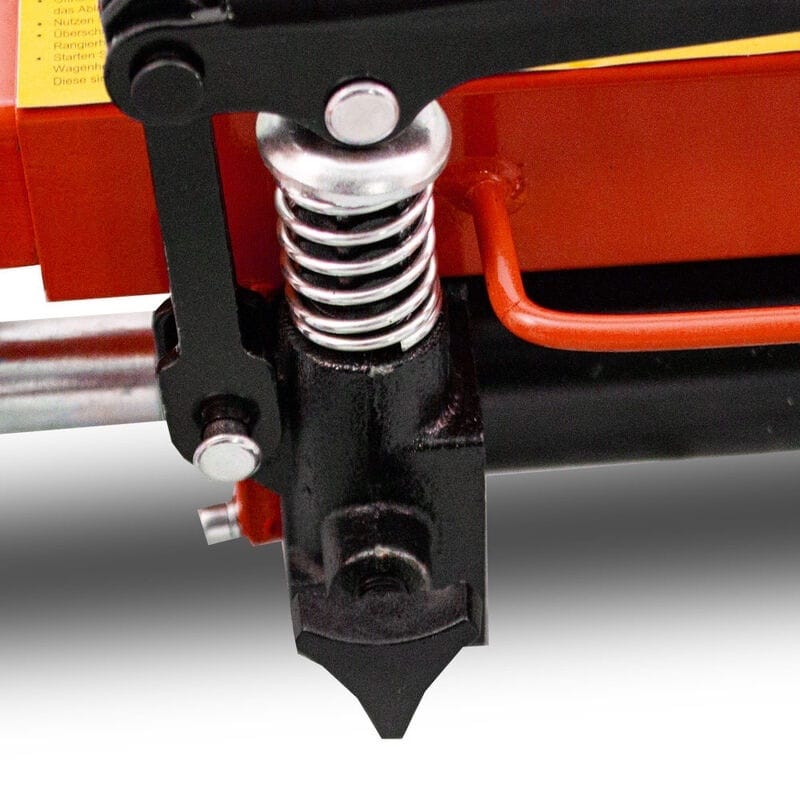 Podnośnik wsuwa się od boku pod koło i po prawidłowym ustawieniu podnośnika, zostaje ono ponoszone do momentu aż straci ono kontakt z podłożem.