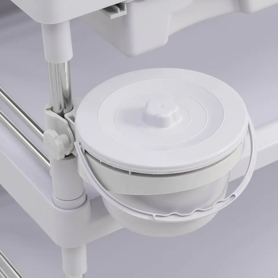 Wózek zabiegowy marki Steinberg Systems pozwala przechowywać w zasięgu ręki najpotrzebniejszy sprzęt: statywy, probówki, płyny czy ręczniki papierowe. Wózek wyposażony został w 3 półki o wymiarach 65 x 46 x 14 cm. Ramka z trzech stron zapobiega przypadkowemu zsunięciu rzeczy. Dwie szuflady o wymiarach 18 x 35 x 8 cm zapewniają dodatkowe miejsce do przechowywania. Na bocznej rurce znajduje się obrotowy o 360° kosz na śmieci. 4 kółka wykonane z plastiku (ABS+PCV) zapewniają wygodne przemieszczanie pomocnika oraz nie rysują podłóg. Dwa hamulce postojowe zapewniają niezbędną stabilność. Nośność wózka wynosi 60 kg. Konstrukcja wykonana została ze stalowych rurek a półki z tworzywa sztucznego.