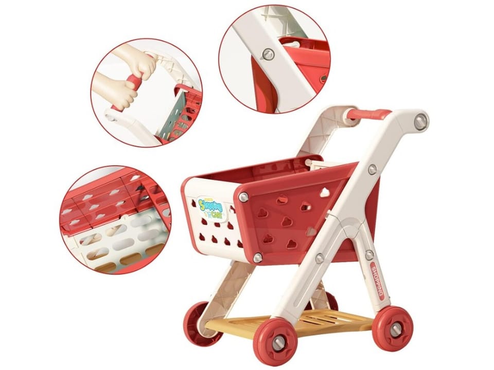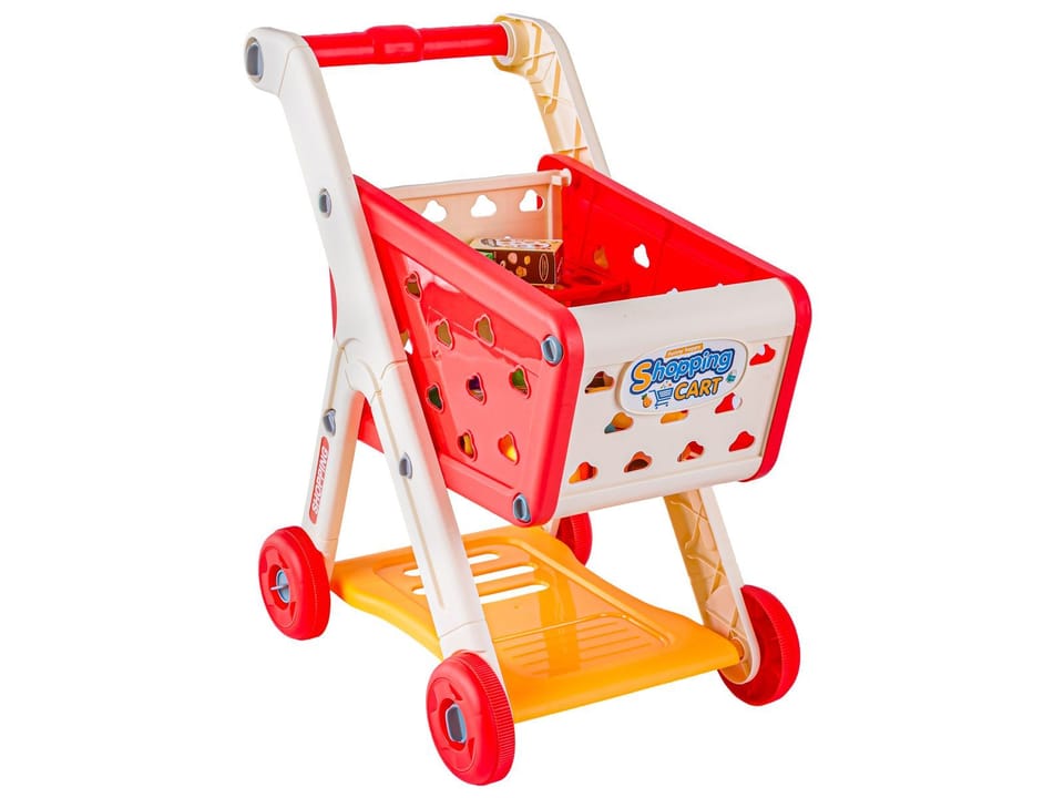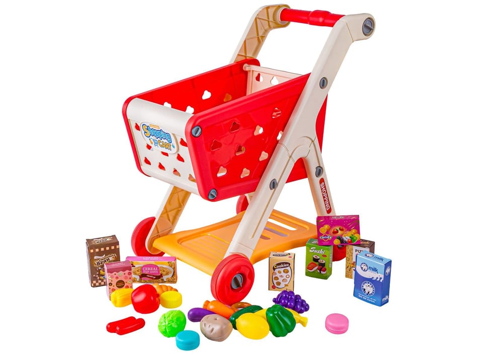 Wózek Na Zakupy CZERWONY Koszyk Sklepowy + Akcesoria Owoce Warzywa Supermarket