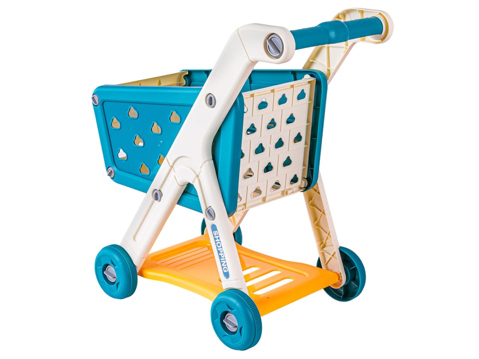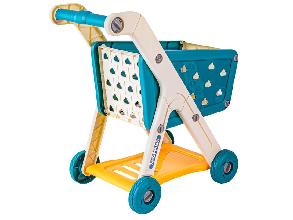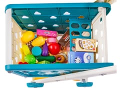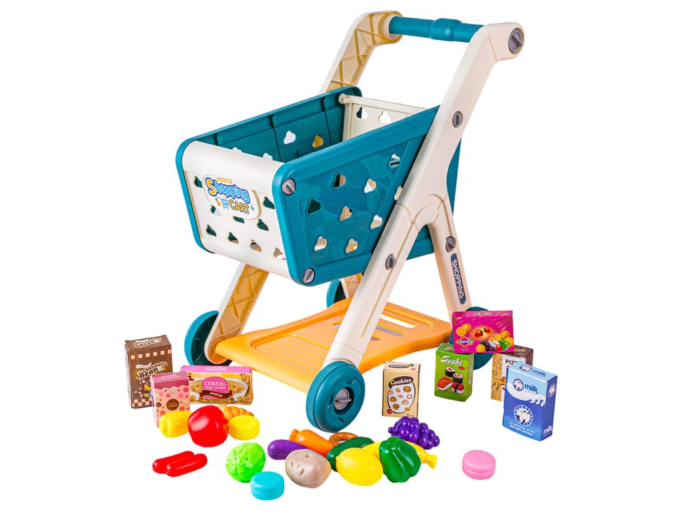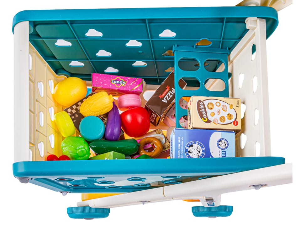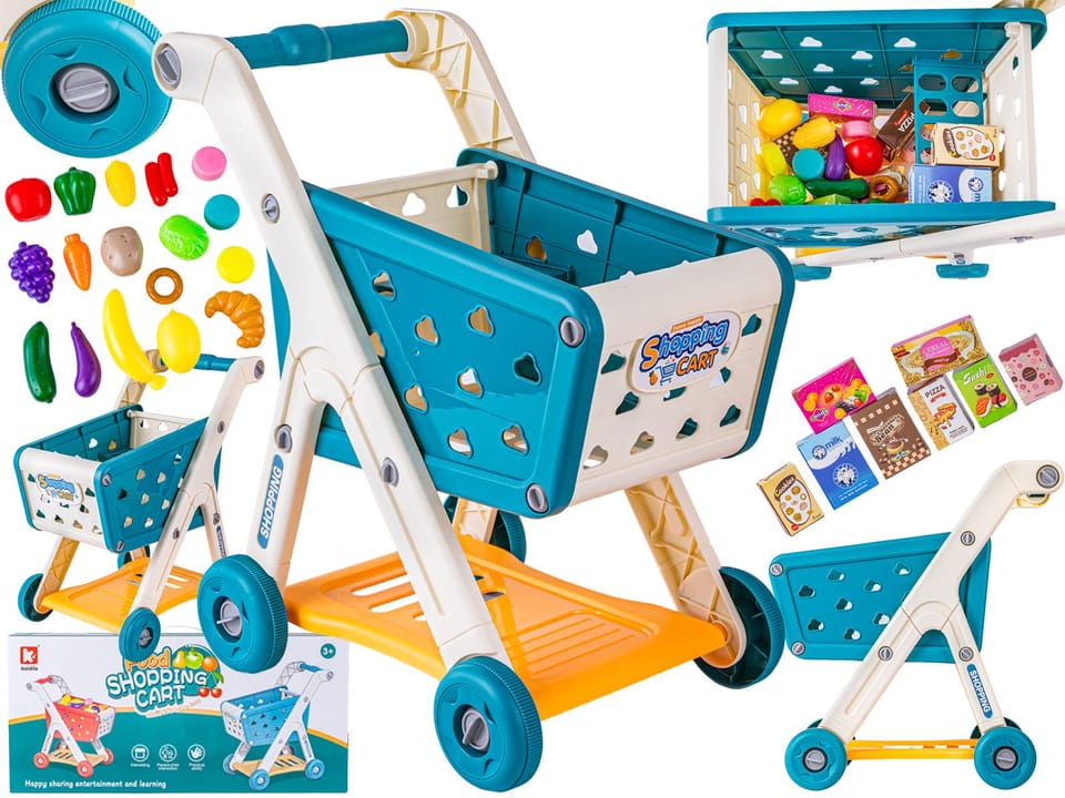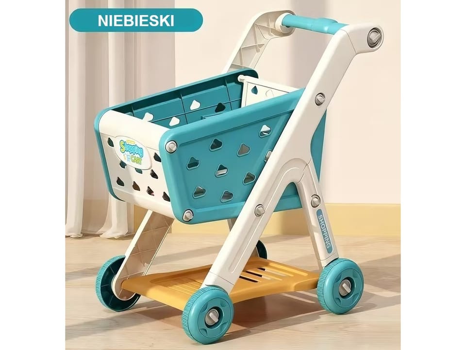 Wózek Na Zakupy NIEBIESKI Koszyk Sklepowy + Akcesoria Owoce Warzywa Supermarket