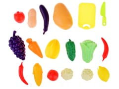 Plastikowe, kolorowe owoce, warzywa są bardzo atrakcyjnie wykonane, zapewnią dziecku wiele pomysłów do zabaw np: nauka skąd pochodzi dany owoc lub warzywo, gdzie rośnie, jaki ma kolor itp. Zestaw zapakowany w kolorowe, efektowne opakowanie, które świetnie nada się na prezent.