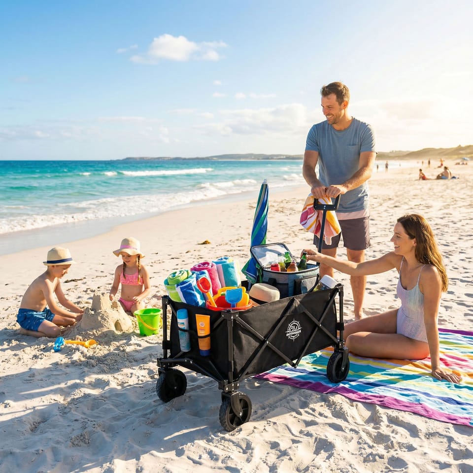 Wózek ogrodowy plażowy składany WAGEN czarnyTwój niezawodny pomocnik na plażyWytrzymały | Składany | Wzmocniona podłoga Wózek plażowy Wagen to niezawodne i wygodne rozwiązanie dla każdego miłośnika plażowania. Ten solidnie wykonany wózek został zaprojektowany z myślą o komforcie i trwałości, dzięki czemu transport rzeczy na plażę staje się dziecinnie prosty. Dzięki dużej pojemności oraz solidnej konstrukcji, wózek ten sprawdzi się idealnie w każdych warunkach. Wyposażony w parę skrętnych kółkek z hamulcami oraz regulowaną rączkę, zapewnia łatwość manewrowania, nawet na trudnym terenie. Dodatkowo, wózek posiada wzmocnione dno, co gwarantuje bezpieczeństwo przewożonych przedmiotów. ZaletyWytrzymała konstrukcja: Solidna stalowa rama i wytrzymała tkanina Oxford 600D zapewnia trwałość i odporność na uszkodzenia.Wzmaniana podłoga - wnętrze wózka należy wyłożyć dodatkową, wzmanianą podłogą dołączoną do zestawu.Łatwość transportu: Składana konstrukcja umożliwia szybkie i łatwe przechowywanie oraz transport wózka.Duża pojemność 130l: pozwala na przewożenie wielu przedmiotów.Wszechstronność: Idealny na plażę, pikniki, kempingi i codzienne zakupy.Komfort użytkowania: Skrętne koła i regulowana długość uchwytu ułatwiają manewrowanie wózkiem na różnych powierzchniach.Bezpieczeństwo: Dodatkowe hamulce jednej parze kół pozwolą bepiecznie zaparkować wózek nawet na nierównej powierzchni.W zestawie pokrowiec: zapewnia dodatkową ochronę przed piaskiem i słońcem.Stylowy wygląd: Elegancki czarny kolor i minimalistyczne logo nadają wózkowi nowoczesny i estetyczny wygląd. ✅Wymiary wózka WAGENRozłożonyWysokość całkowita: 108 cmWysokość od podłogi do krawędzi wózka: 55 cmWysokość ściany: 32 cmSzerokość wózka: 48 cmŚrednica kółka: 17 cmSzerokość bieżnika: 3,5 cmZłożony:Wysokość: 74 cmSzerokość: 20 cmGłębokość: 32 cm Informacje dodatkowePrzedstawione kolory należy traktować poglądowo - mogą odbiegać od rzeczywistych ze względu na różne ustawienia monitorów oraz proces obróbki zdjęć. Rzeczywiste wymiary mogą się różnić od podanych wyżej. Tolerancja błędów może wynosić +/- 5%.Nogi w krześle można dodatkowo wyregulować w zakresie poziomu. Marka:OutdoriumKod produktu:MG064216Kolor:czarnyWysokość: 55 cmSzerokość:48 cmDługość:90 cmMateriał :Oxfrod 600DPrzeznaczenie:przewóz przedmiotów, plaża, kempingDodatkowa para hamulcówtak