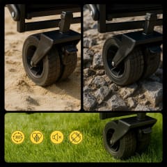 - - Szerokie koła terenowe - o średnicy 16 cm i szerokości 9,5 cm gwarantują płynne prowadzenie po piasku, trawie i żwirze.