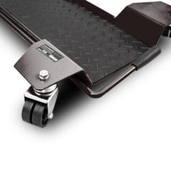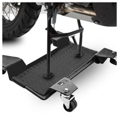 Dźwignia hamulca znajdująca się na podeście gwarantuje stabilną podstawę motocykla podczas manewrowania. Dodatkowo, solidna konstrukcja wózka zapewnia niezbędną wytrzymałość i trwałość.