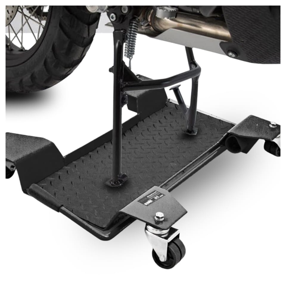 Podest manewrowy to idealne narzędzie do manewrowania motocyklem w ciasnych przestrzeniach. Dzięki jego solidnej konstrukcji, wózek może bezpiecznie utrzymać motocykle o wadze do 200 kg. Jest kompatybilny z większością motocykli wyposażonych w podstawkę centralną.