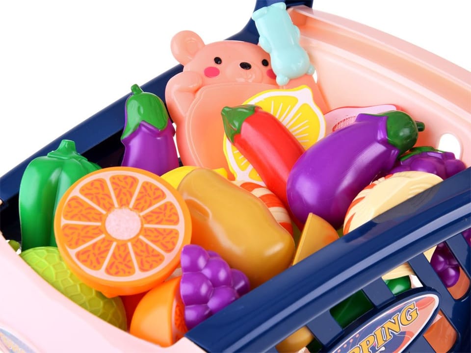 Wózek sklepowy + warzywa owoce do cięcia Zabawa w sklep 36 ele ZA4791