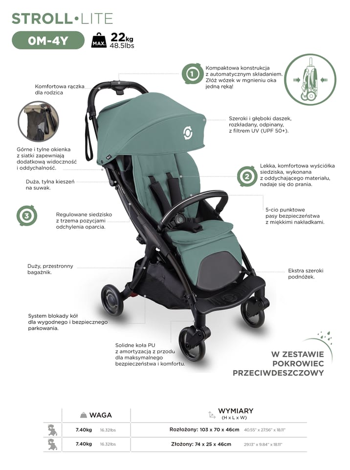 STROLL•LITE to lekki, szybko składany wózek, który łączy styl i praktyczność.