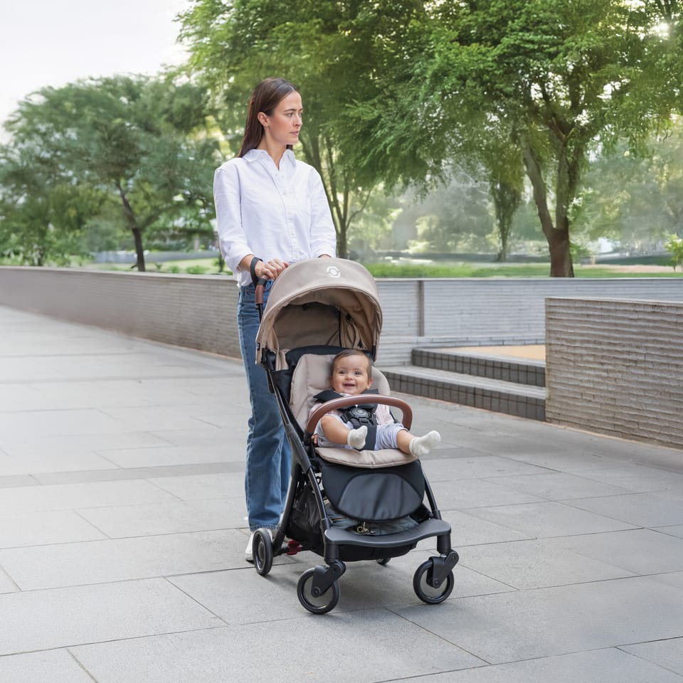 System parkowania i pas dla rodzica zapewniają spokój ducha, niezależnie od tego, czy stoisz w miejscu, czy jesteś w ruchu, podczas gdy szeroko zakrywający daszek zapewnia dodatkową ochronę przed promieniowaniem UV (UPF 50+).