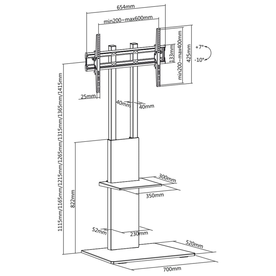 Uniwersalny stolik stand z uchwytem do montażu telewizorów LED, LCD, plazma, monitorów o wadze do 40 kg. Na wkomponowanym w stoliku uchwycie możemy zawiesić telewizor od 37 - 70 cali o maksymalnym rozstawie śrub 600mm na 400mm. Uchwyt malowany jest metodą proszkową - dzięki takiej metodzie jest odporny na korozje i zarysowania.