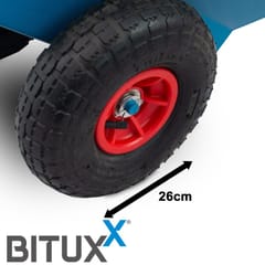 Dwa pneumatyczne koła umożliwiają płynną jazdę i wygodę w manewrowaniu płytami.