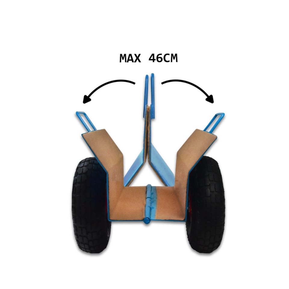 Szerokość można regulować, co pozwala na indywidualne dopasowanie wózka do danej płyty.