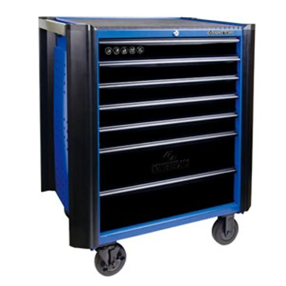 WÓZEK WARSZTATOWY Z PROTEKTORAMI 7 SZUFLAD BEZ NARZĘDZI) - NIEBIESKI+CZARNE SZUFLADY, PROWADNICE ŁOŻYSKOWANE King Ton
