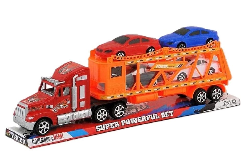 Auto z lawetą i 4 autami, napęd z koł.zam; 49x8x17cm, PVC
