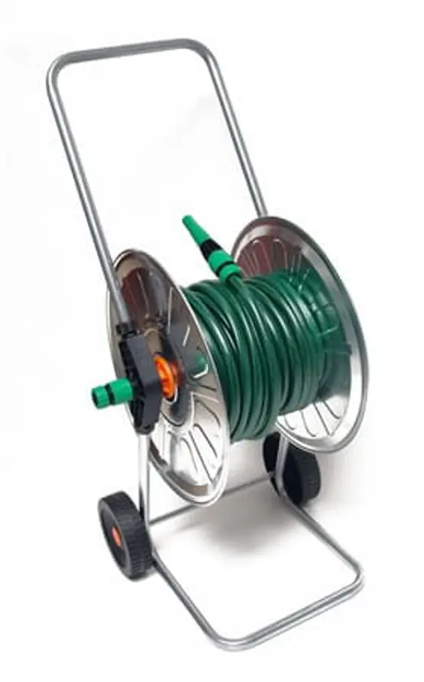Opis produktu: Wózek z wężem ogrodowym to produkt dla osób ceniących sobie porządek i wygodę. Zajmuje on niewiele miejsca, dlatego łatwy jest w przechowywaniu. U dołu zamontowane są specjalne kółka, dzięki którym można bez większych problemów przemieszczać wózek z miejsca na miejsce. W zestawie znajdują się cztery różne złączki dopasowujące się do wielu rodzajów kranów. Dodatkowym atutem jest konstrukcja metalowa ocynkowana gwarantująca odporność na warunki atmosferyczne i długowieczność. Specyfikacja techniczna materiał metal ocynkowany w zestawie 4 szybkie złączki do połączeń przewodów, 1 strzykawka do wody, 1 przyłącze wody z kranu 1/2", uszczelki - przyłącze węża do wody 1/2", połączenie wewnętrzne 1/2" średnica zewnętrzna szpuli węża 40 cm użyteczna szerokość rolki 22 cm średnica koła 140 mm szerokość koła 45 mm wymiary 40 cm x 50 cm x 89cm waga 5,5 kg Ułatw sobie życie!