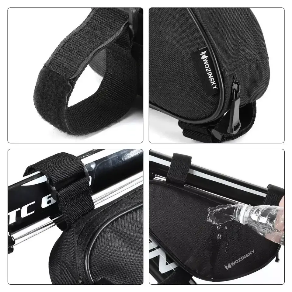 Torba rowerowa na ramę Wozinsky WBB11BK to trójkątna torba mocowana z przodu ramy przy pomocy zaczepów na rzepy. Ma bardzo klasyczną konstrukcję – jednokomorowej sakwy zamykanej na zamek błyskawiczny. Zbliżony do trójkąta kształt idealnie wpisuje się w konstrukcję roweru.